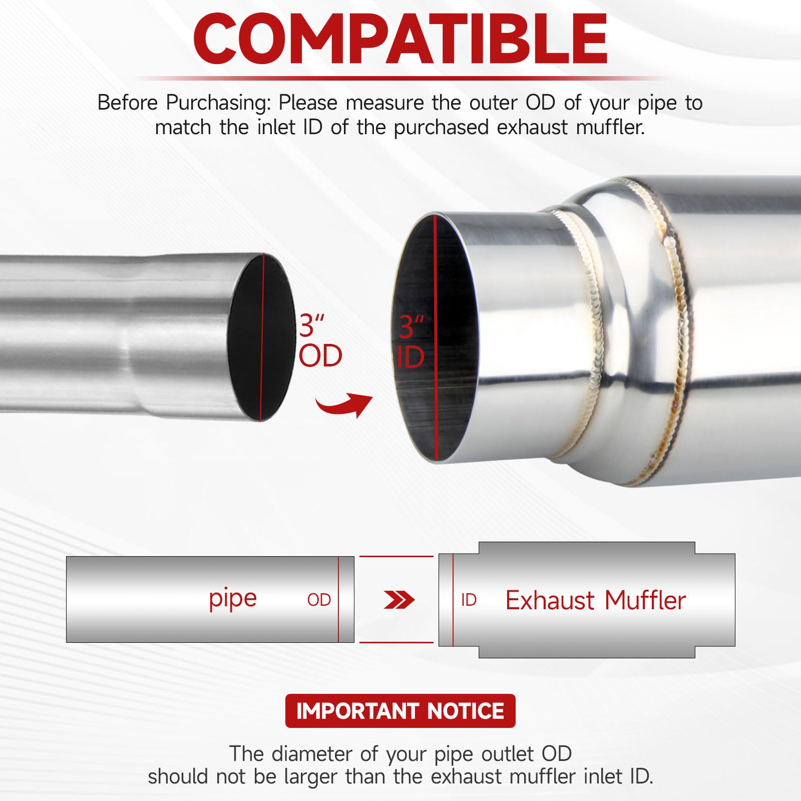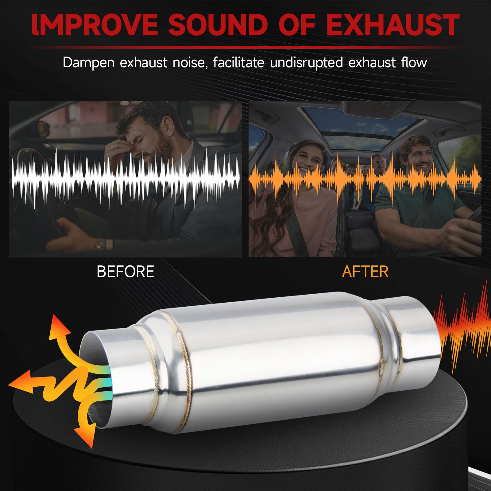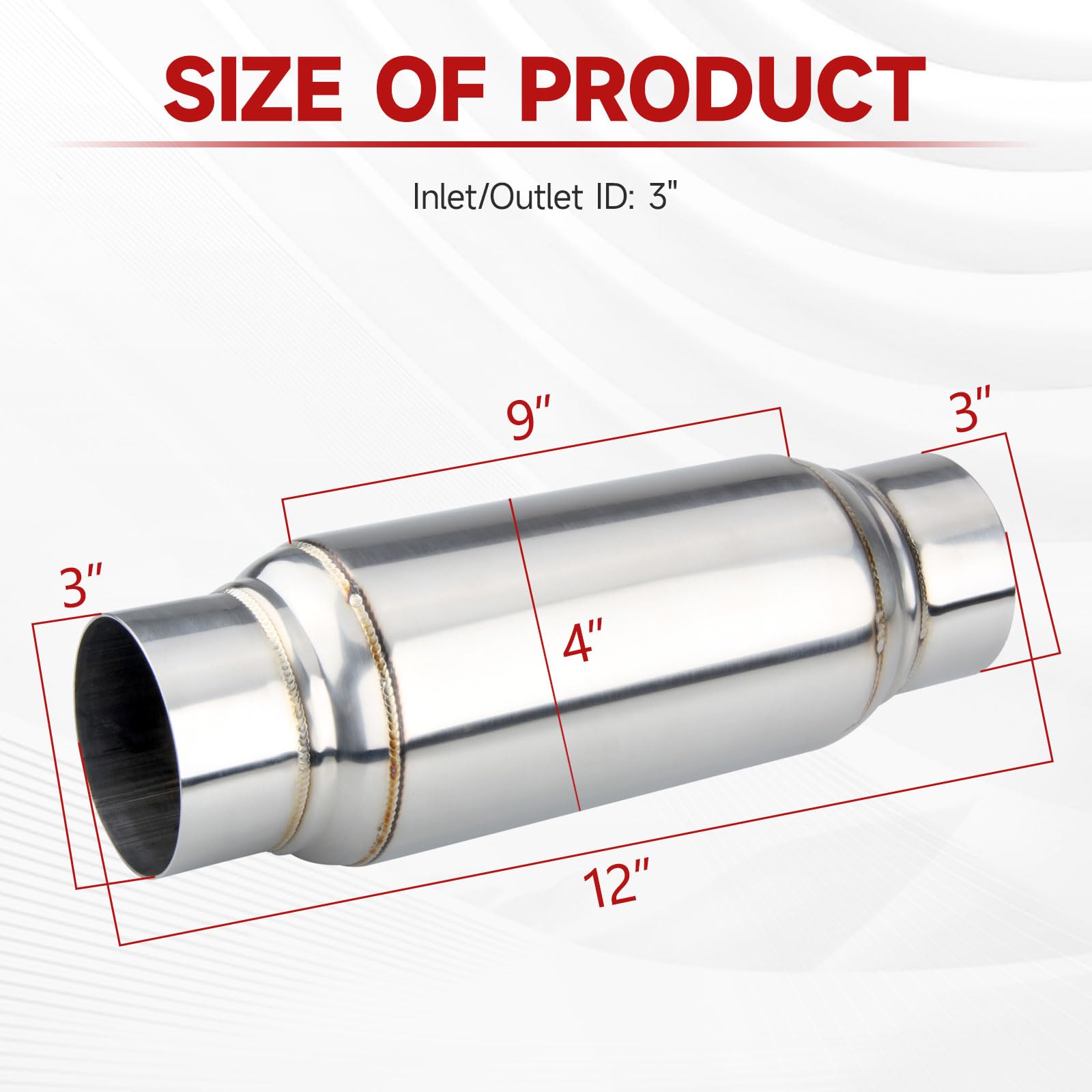 3" inlet & outlet, 12" Overall Length Performance Resonator 2pcs
