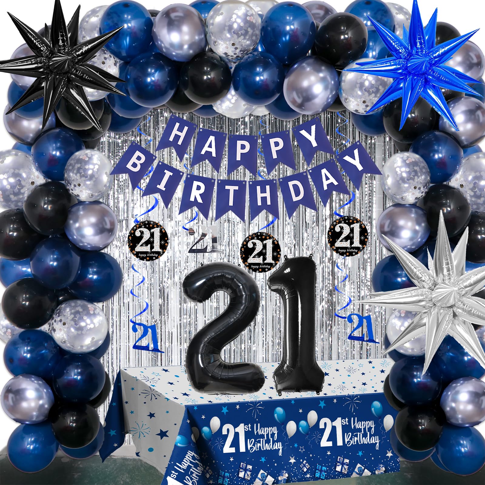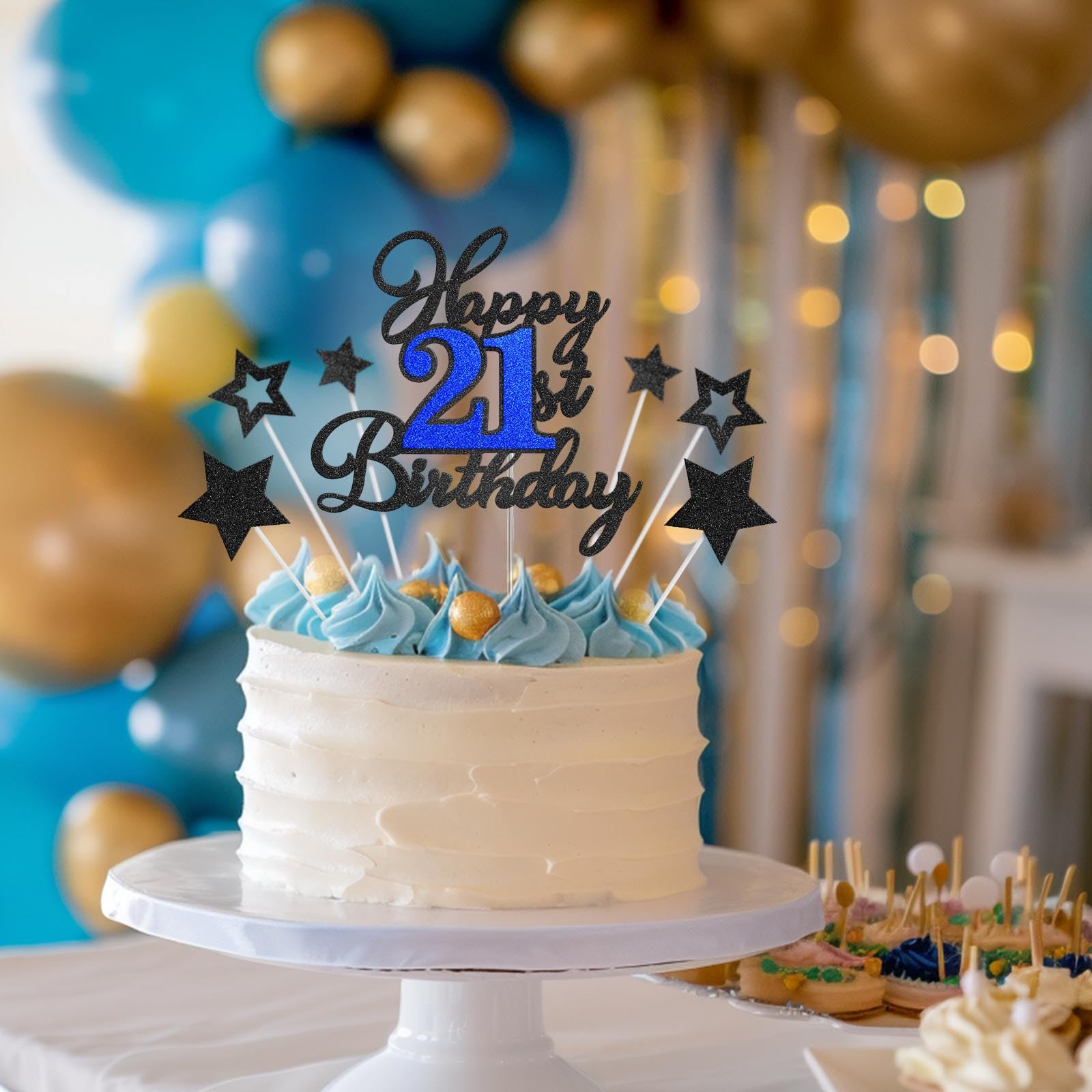 Happy 21st Birthday Cake Topper for Happy 21st Birthday Theme Party Cake Decorations Supplies. Ideal for happy 21 birthday theme party, 21st anniversary theme party cake decorations supplies. Attention: This cake topper features glitter on one side and is white on the other. It's meant for decoration only, so please do not place it in the oven or microwave. Specifications: Material: - Glitter card stock + Plastic stick - Adhesive dots Package Includes: - 1 pc Happy 21st Birthday cake topper - 1 pc Food-Grade clear plastic stick - 6 pcs Black glitter stars - 6 pcs White plastic sticks - 10 pcs Adhesive dots