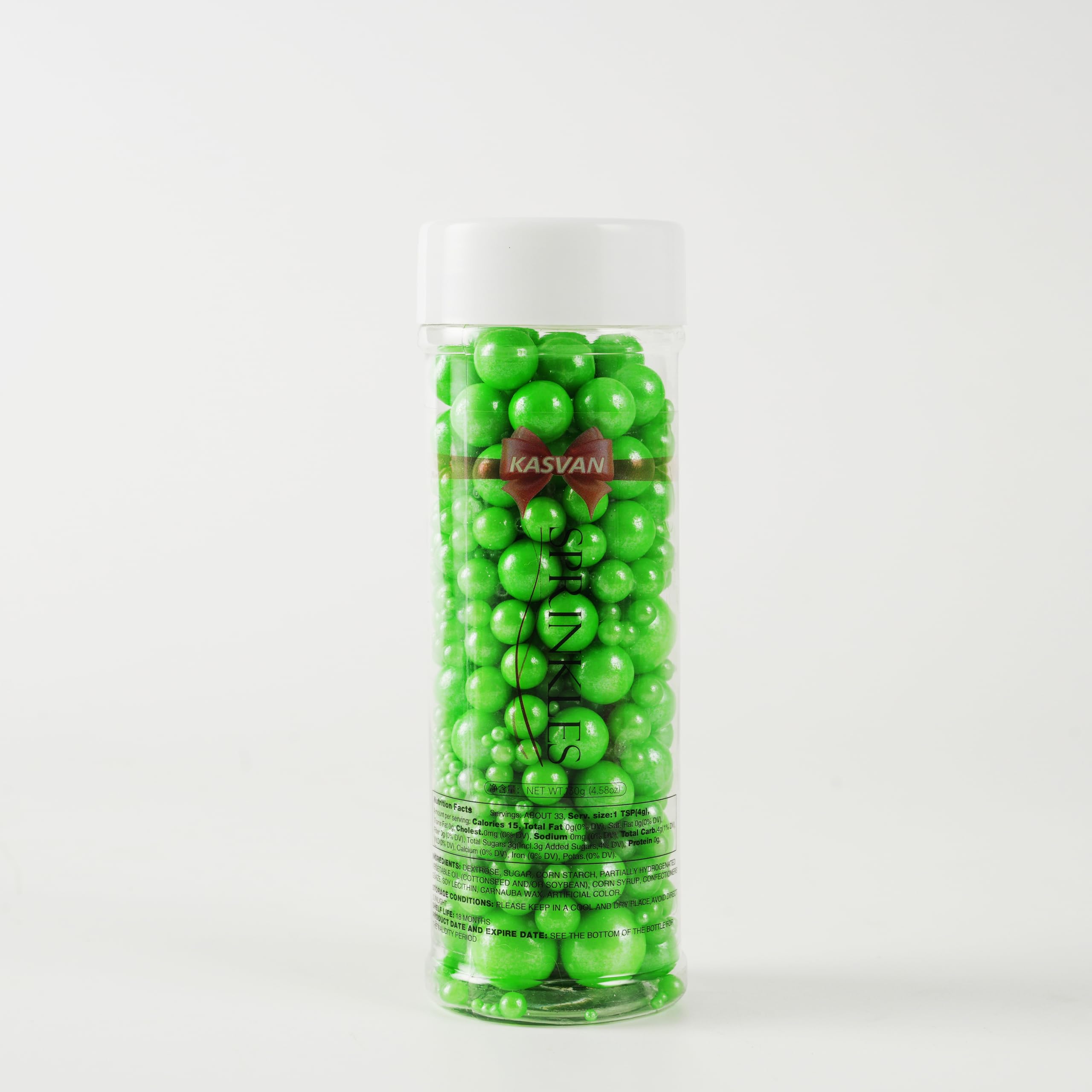 ✨PACKAGE INCLUDES: 1 edible bottle of Green pearl sugar, 130g/4.58 oz. The main ingredients of sugar pearls are: sugar, beetroot, spirulina, carnauba wax, gluten free, nut free.