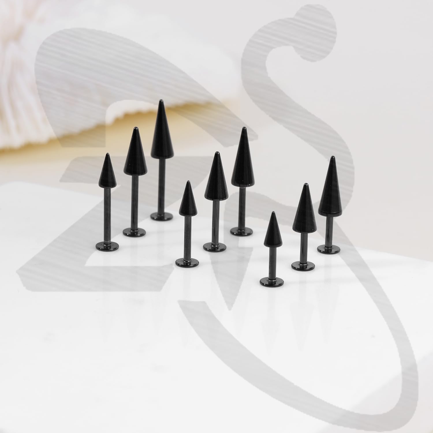 ❀Spike Monroe Piercing Size——Spike philtrum jewelry gauge: 16g(1.2mm); Lip stud ring bar length: 6/8/10mm. Medusa piercing jewelry Ball/ Cone Size: 3/6/8/10mm. Be careful the spike lip piercing long cone when using.