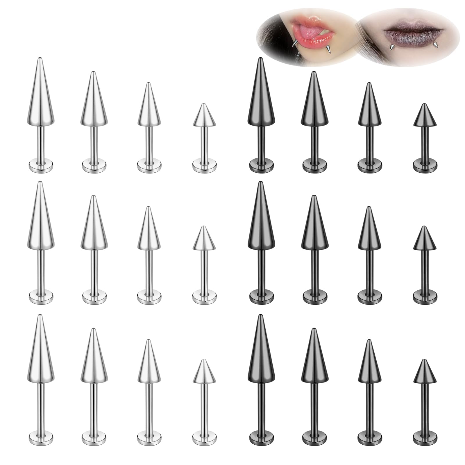 ❀Spike labret lip Jewelry——You will receive 24 Pieces 16g ashley piercing lip jewelry (12Pcs Black and 12Pcs Sliver). The labret piercing jewelry can be as gift for Families or Friends on Birthday, Graduation, Mothers' Day, Thanksgiving, Christmas, Valentine's Day, etc.