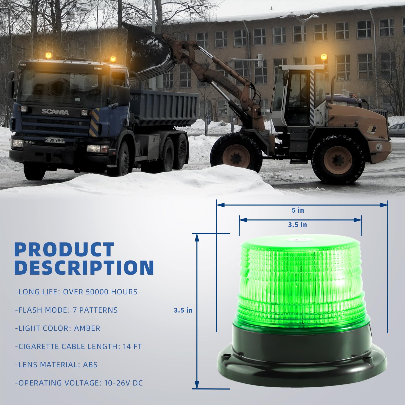 APPLICATIONS - This beacon strobe light is suitable for postal and city service workers, emergency cars and trucks, forklifts, construction vehicles, tractors, snowplows, or any 12V-24V vehicles. Improve drive security and avoid accidents.