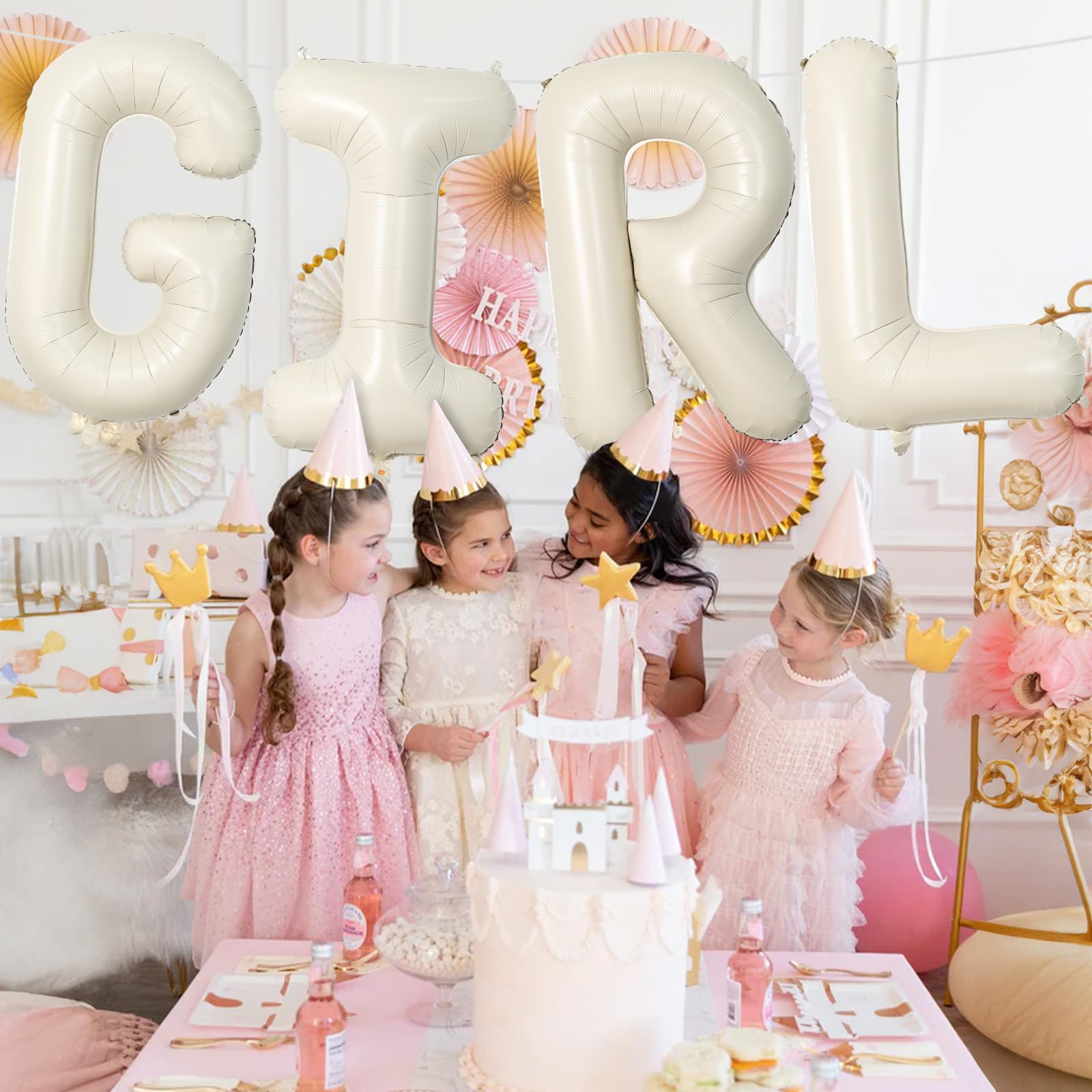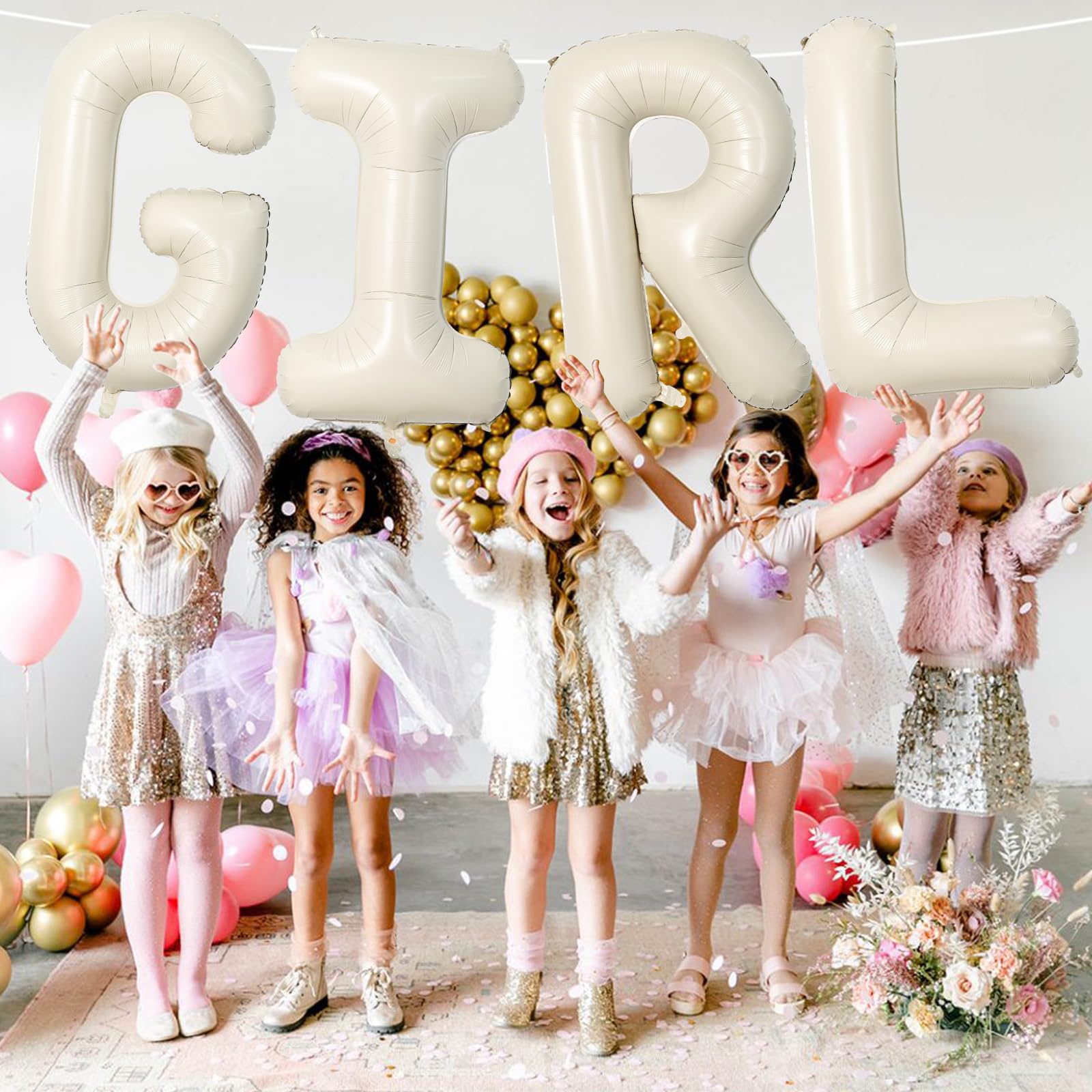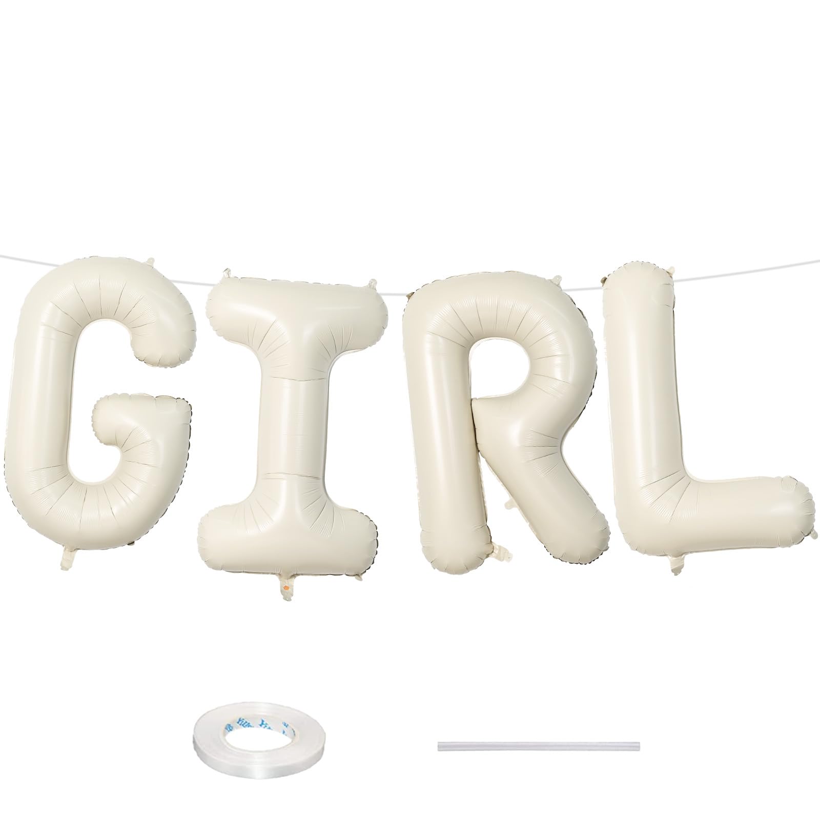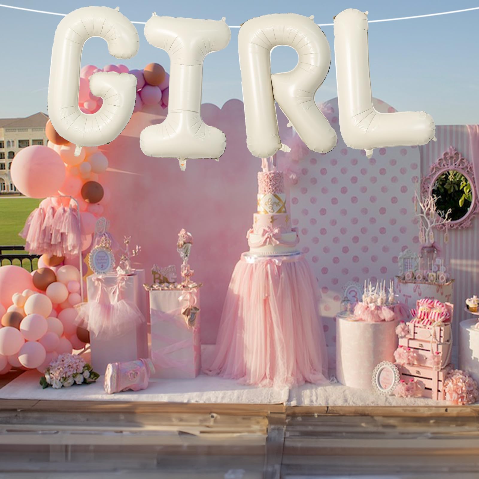 💕 GIRL Balloons for Baby Shower Party Decoration 💕 You will get 4 pieces 40 inch large beige G + I + R + L foil letter balloons with 1pc balloon ribbon, perfect for baby girls baby shower gender reveal announcement son birthday party decorations supplies.