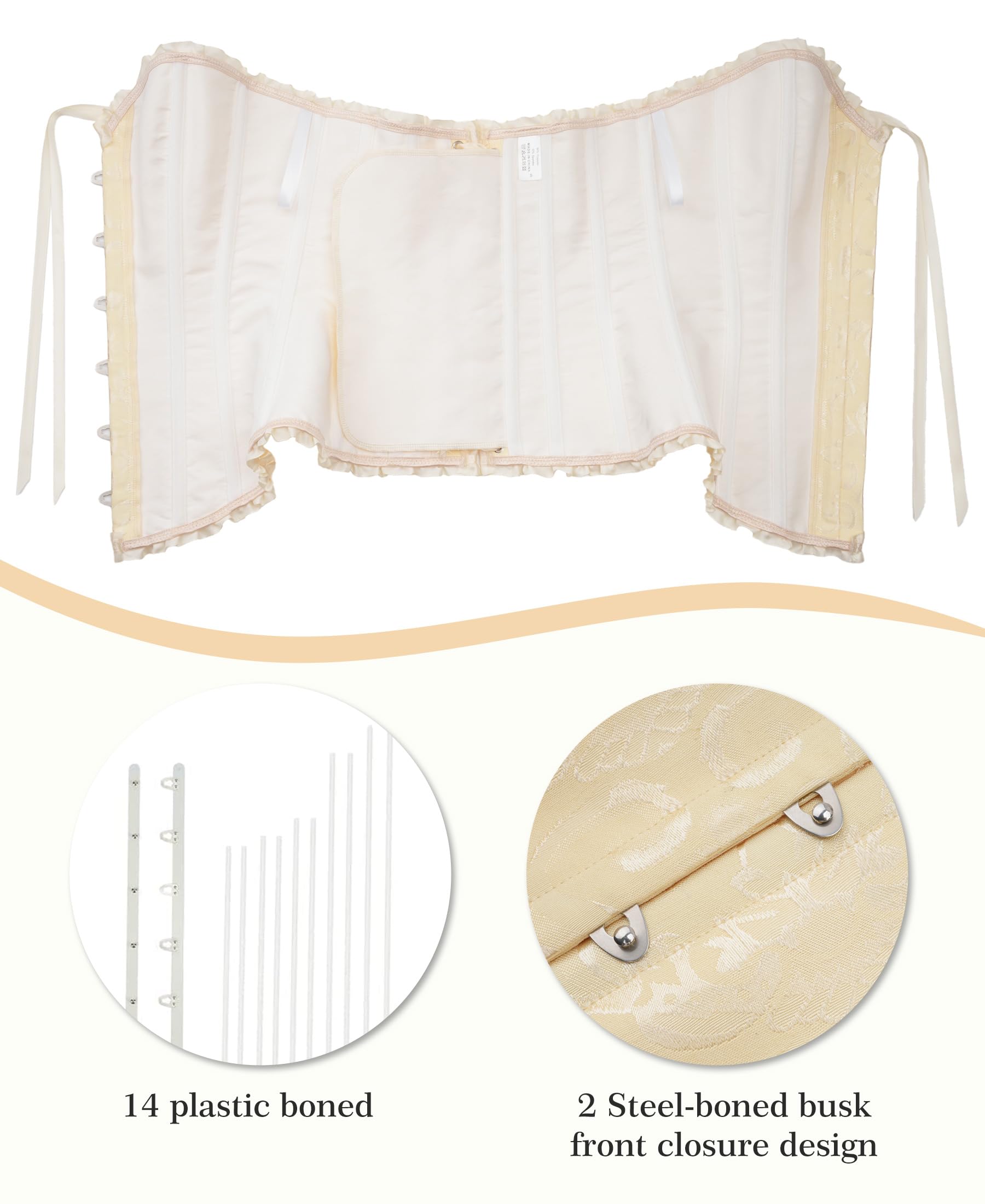 PREMIUM CRAFTSMANSHIP: Our women's bustiers & corsets are crafted with an unwavering commitment to quality. The outer shell of corset shapewear is a blend of luxurious Polyester, complemented by a pure Polyester lining that promises longevity and resilience. The stainless steel busk closure stands as a bastion of reliability, ensuring your corset black crop top remains securely fashioned, no matter the occasion