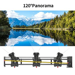 【Three shooting modes】Horizontal/tracking/120-degree panoramic shooting can be achieved by adjusting the slider position to obtain multi-angle shooting effects. The slider position for tracking shooting is upper left and lower right; the slider position for panoramic shooting is lower left and upper right; horizontal shooting is horizontal adjustment.