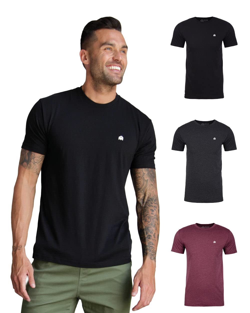 ATHLETIC FIT MENS T-SHIRTS: Our signature mens t-shirts feature a modern cut designed for premium men's clothing styles. Fitted through the chest and shoulders with a relaxed drape, this shirt offers a sharp, stylish silhouette that flatters.