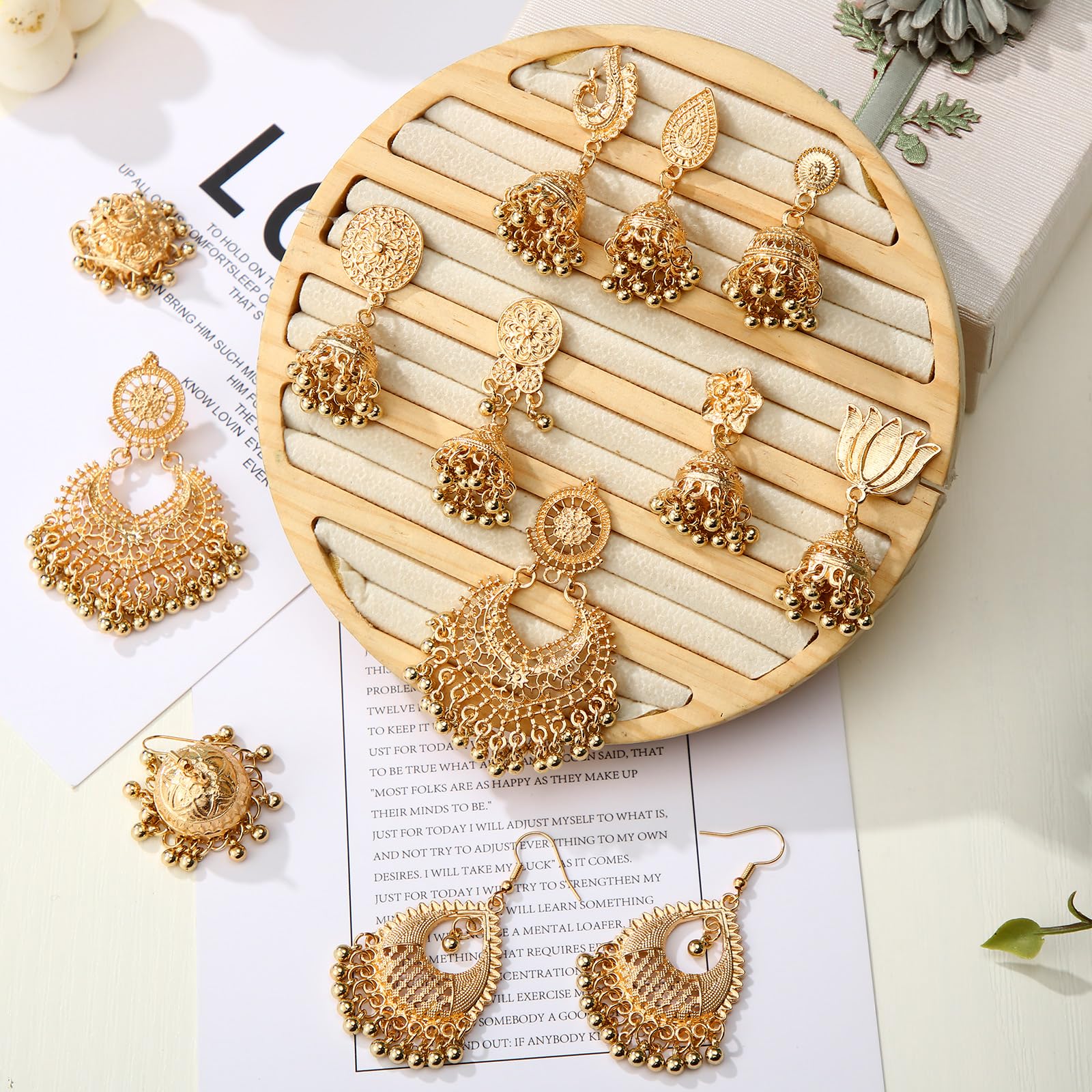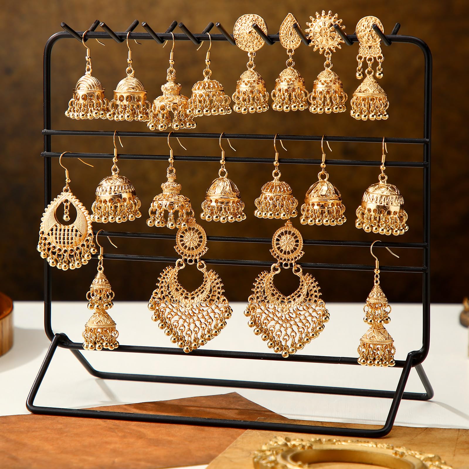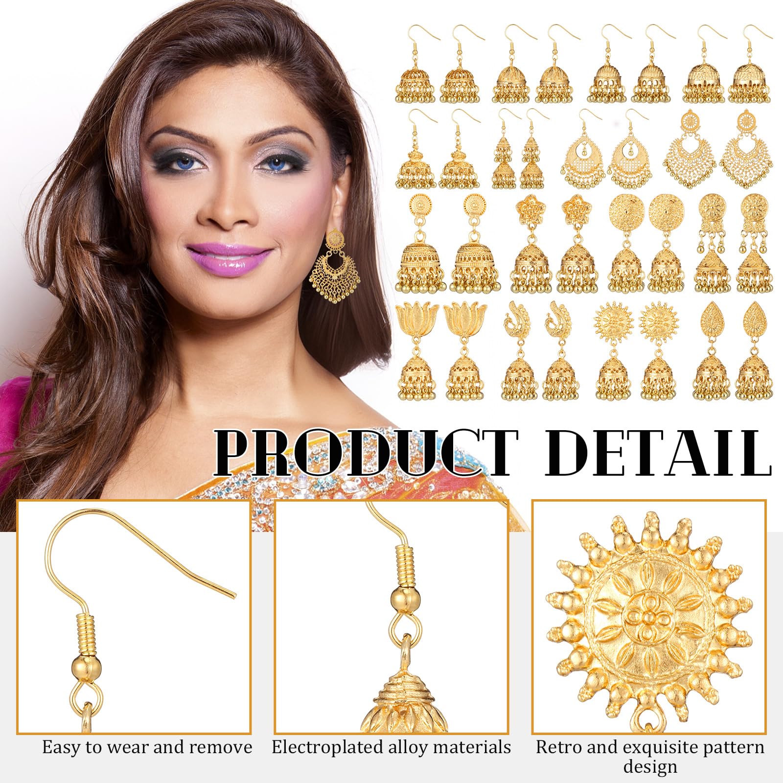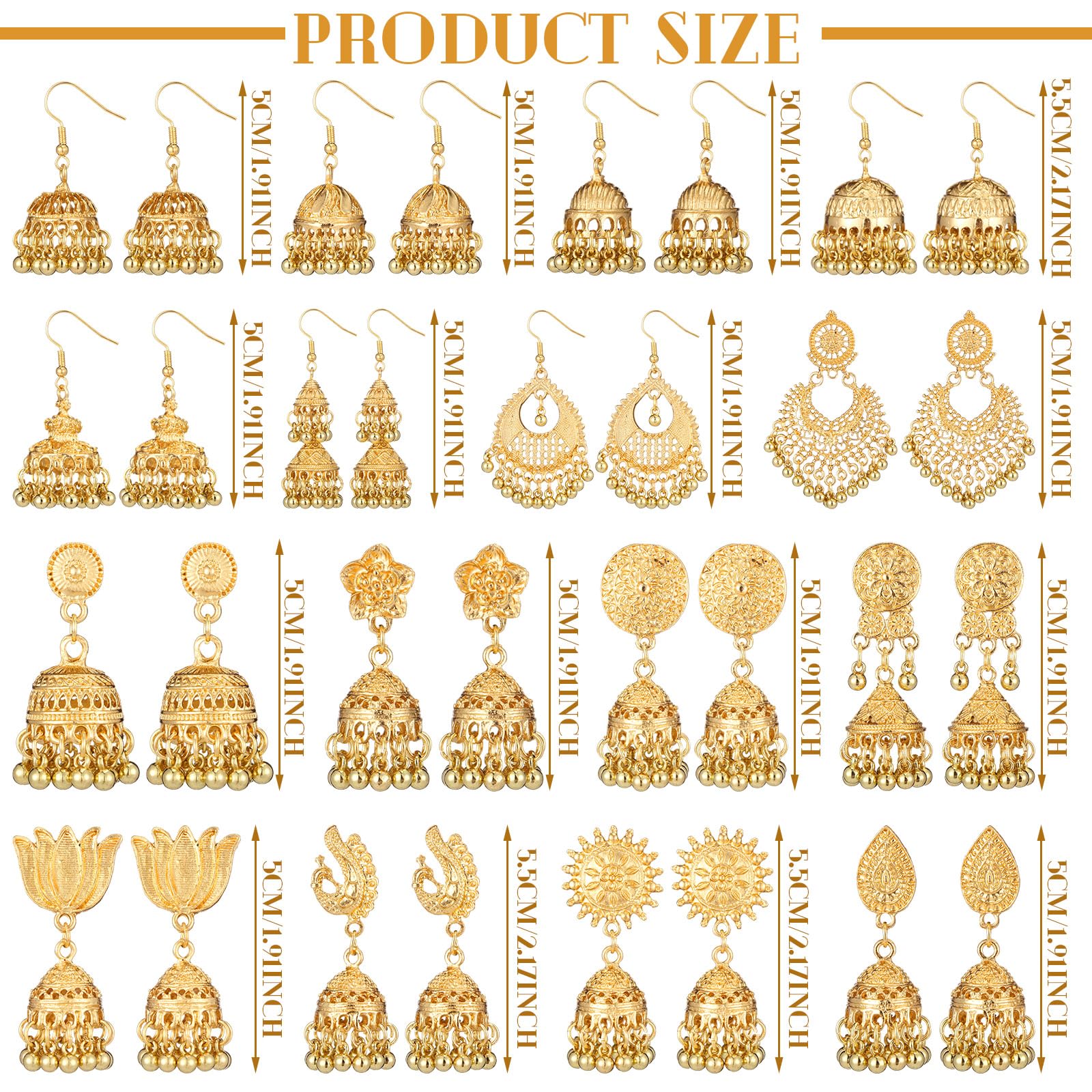 Assorted Variety: our assorted style packs of 16 pairs of Indian jhumka earrings offers a range of designs to suit your styling needs; Whether you're after dangle, bohemian, retro, hollow, or chandelier style earrings, our versatile set has got you covered