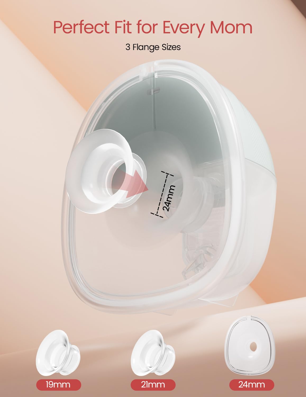Designed for More Moms: Comes with 24mm flange plus 19mm & 21mm inserts to ensure the right fit. Also includes a nipple size measuring card, milk storage bags, and bra extenders for added convenience. Everything you need for a smooth pumping journey, right out of the box