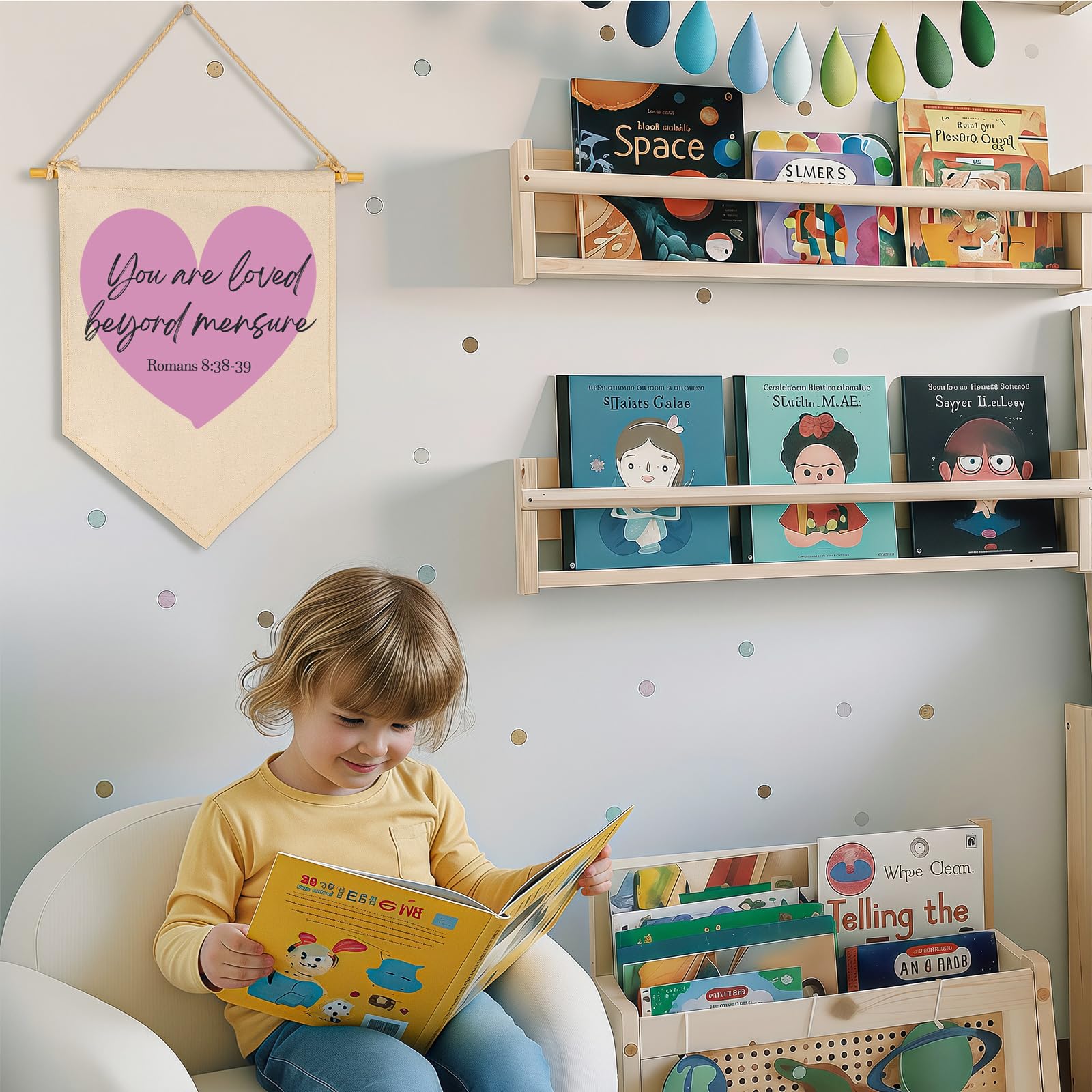 Perfect Size for Baby/Kids's room Space – Our banners are Designed for baby kids teen room wall decor, this wall decor fits easily above crib, changing table or reading corner, playroom,reading room,making a sweet statement without overwhelming small spaces
