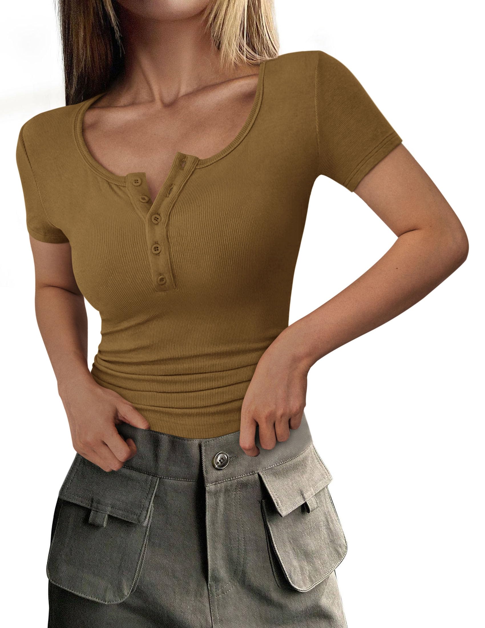 FEATURES: Short Sleeve Womens Tee Shirt; Henley Shirts for Women; Button Up Summer Tops; Fitted Tops For Women; Ribbed Casual Tops For Women; Solid Color Ladies Tops And Blouses; Going Out Tops For Women; Spring Women's T-Shirts; Basic Tops For Woman