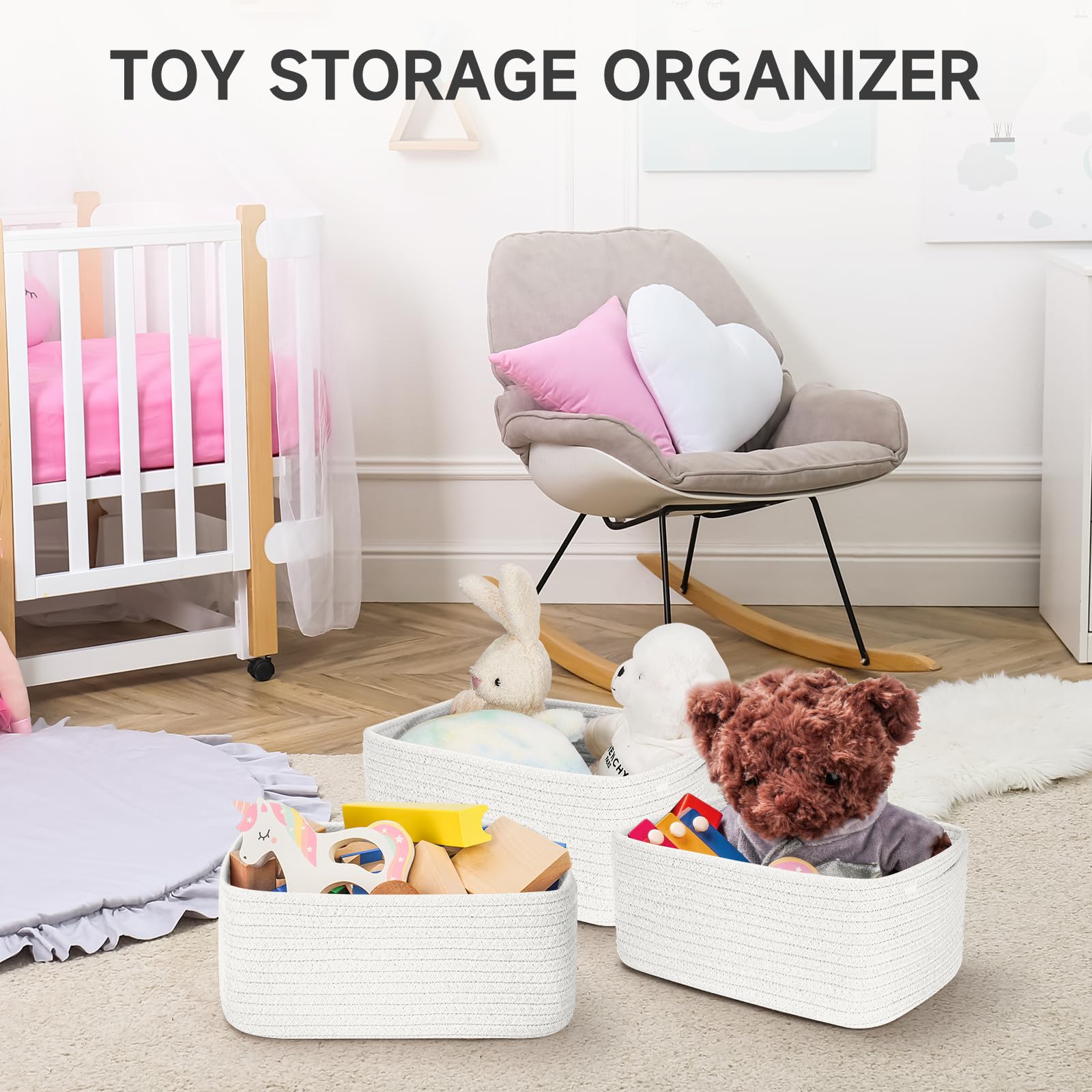 【Basket Organizer】he size of woven rope basket is 11.81 * 7.87 * 5.12Inches.One basket can hold 7-8 books, 4 pairs of pants, 3 thin baby blankets, 10 baby diapers, wet wipes, and a certain number of baby toys, etc. We provide 3 baskets, enough capacity to store your items.