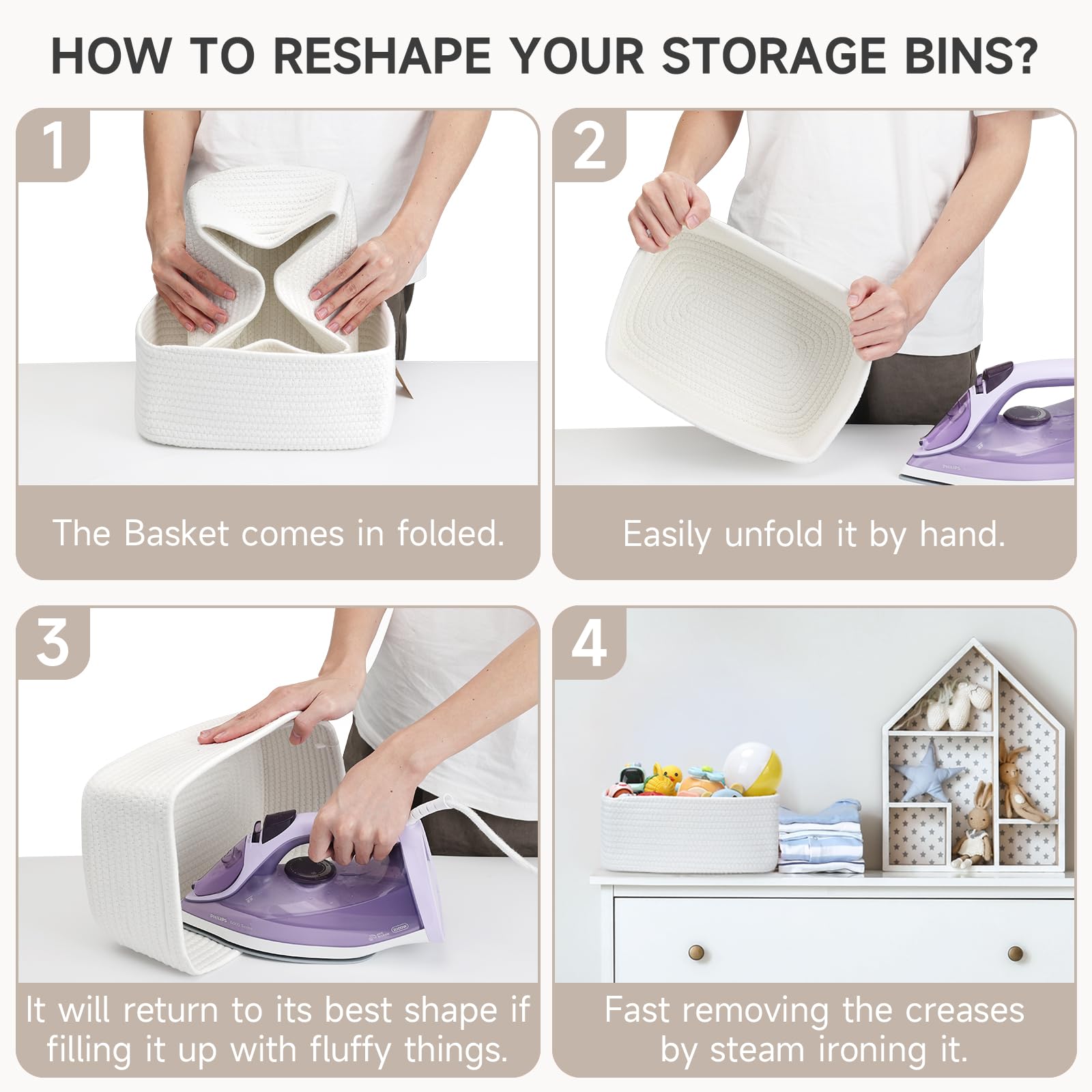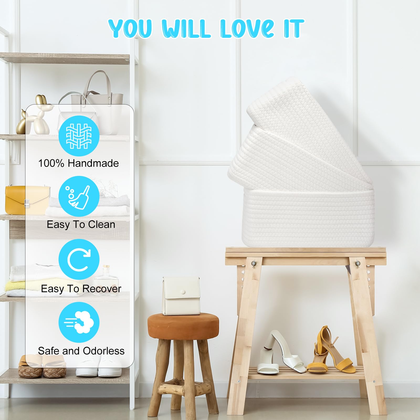 【Home Storage】We specially selected classic colors for these rope basket bins. Our rope baskets can be used as fabric baskets and look great in any room. This cube rope storage basket will enhance any room or decor in your home.