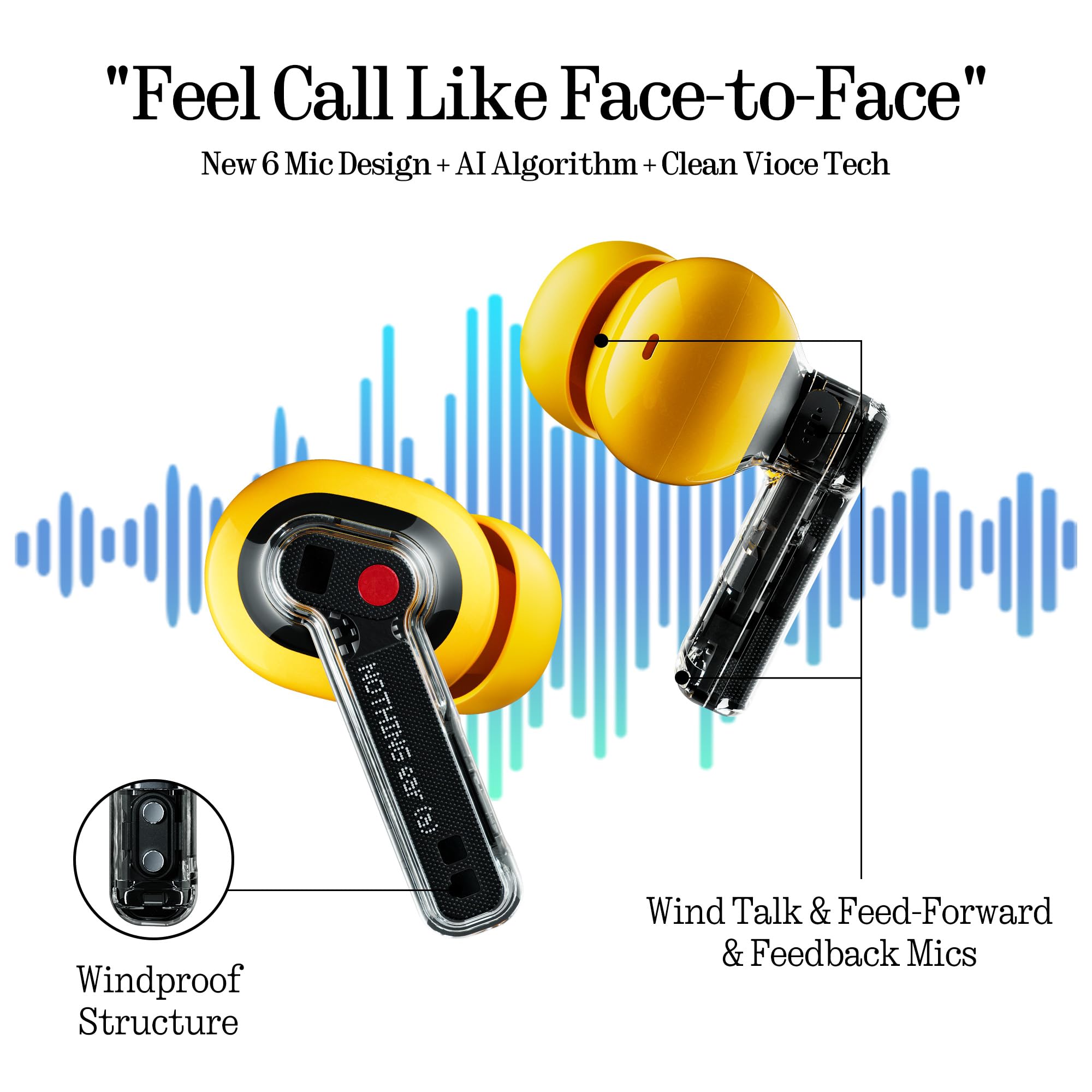 Clear Voice Technology: Crystal-clear calls, anytime, anywhere. Nothing Ear (a) ear buds isolates your voice from background noise, making on-the-go conversations feel like you’re talking in person. We’ve added a dedicated talk microphone and an airflow channel along the stem to drastically reduce wind interference—resulting in 60% less noise compared to Ear (2).