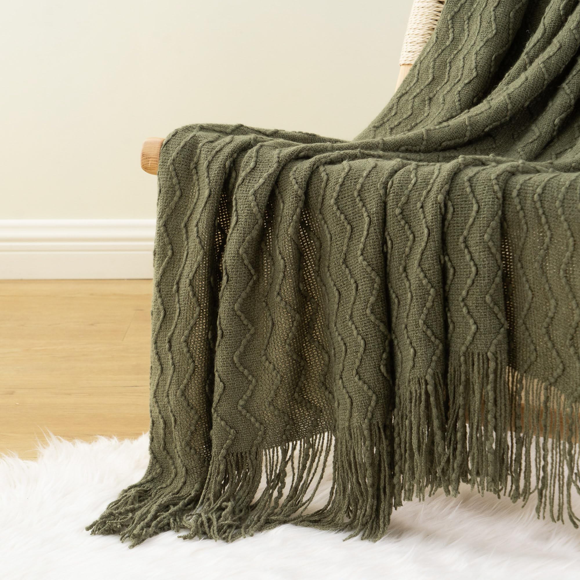 Knitted Zigzag Design - Beautiful & unique knitted texture & stylish zigzag design with tassel fringes add the perfect decorative touch to your couch, sofa, chair or bed with this elegant green throw blankets.