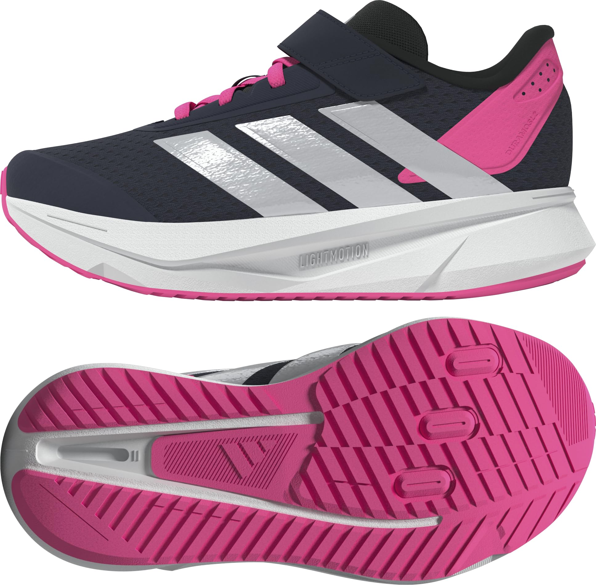 Description Your kid is always on the move, so they need shoes that can keep up. These adidas running shoes are built for nonstop action. A lightweight midsole cushions every step while hook-and-loop straps make them easy to slip on and off. The breathable mesh upper keeps little feet cool and comfortable all day.