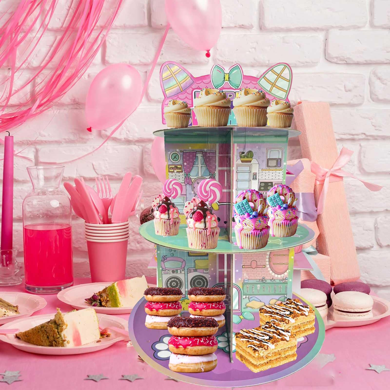 【Premium Materials】 This cartoon cardboard cupcake stand is made of high quality cardboard material. This is a very sturdy cupcake stand for your cupcakes, donuts and desserts. The perfect party decoration gift for your family or friends.