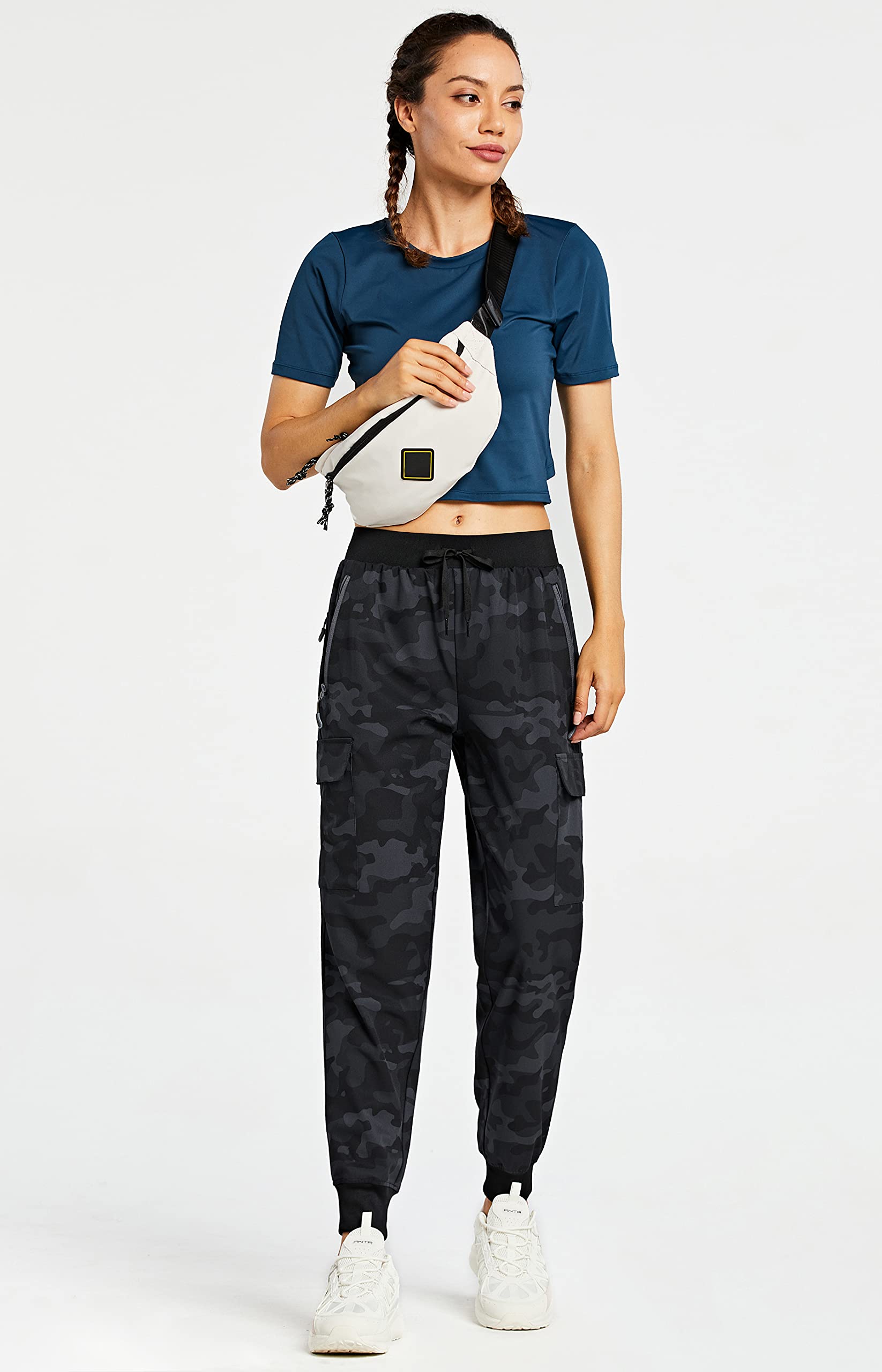 5 functional pockets including 2 side zip pockets, 2 cargo pockets with hook-and-loop closure and 1 back zip pocket, enough to stash your essentials, such as keys, cards and more, free your hands while hiking or traveling
