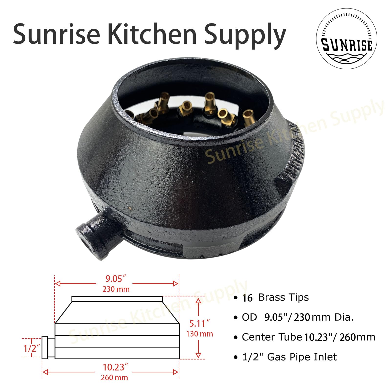 Natural Gas 16 Tips Jet Burner with Cap. Dimension: 9" x 10 1/8" x 4 1/2". 128,000 BTU