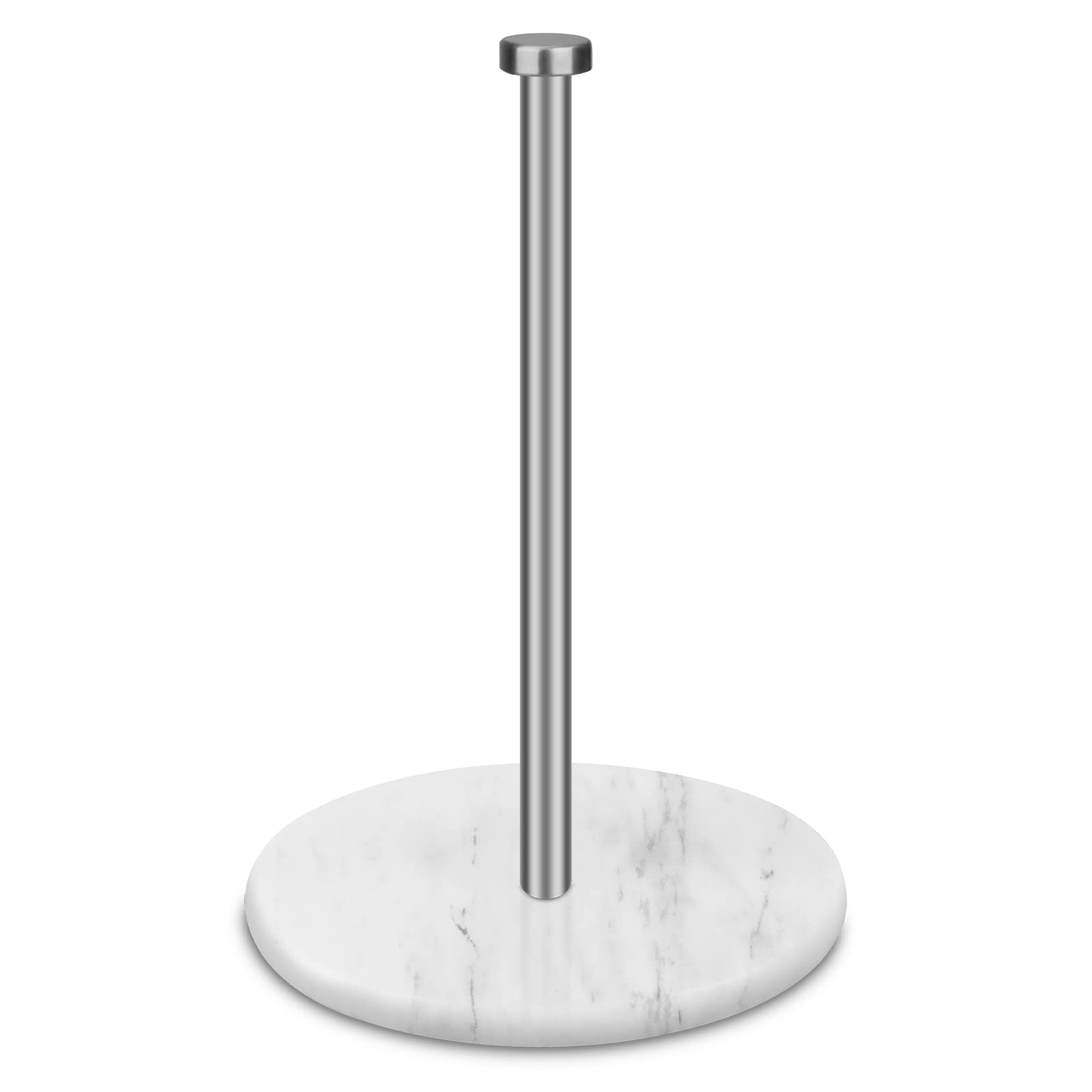 CARE: Natural marble and metal paper towel holders require minimal maintenance to keep them looking their best. The marble base should be cleaned with a damp cloth and mild soap, while the metal component can be wiped down with a soft cloth to prevent scratches.