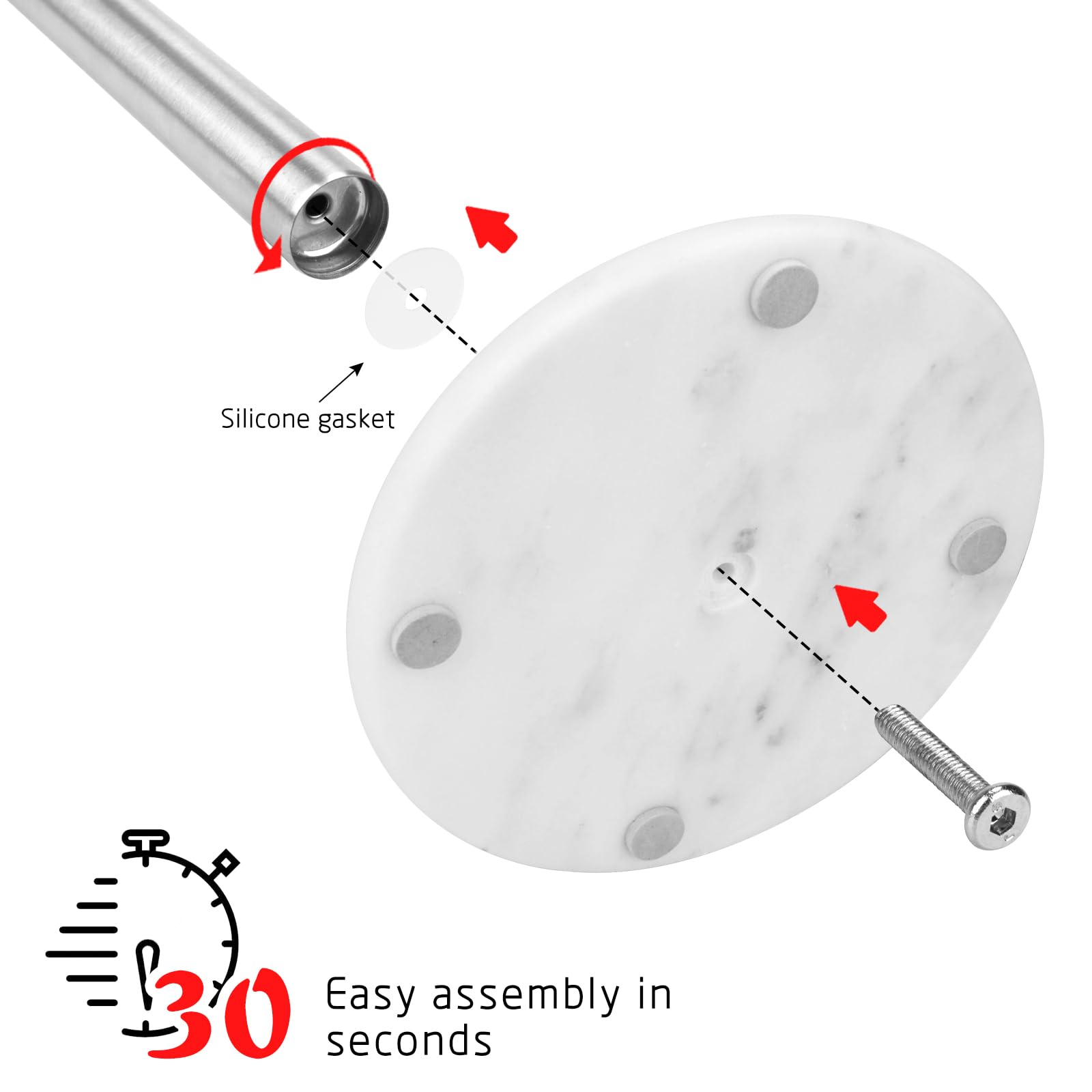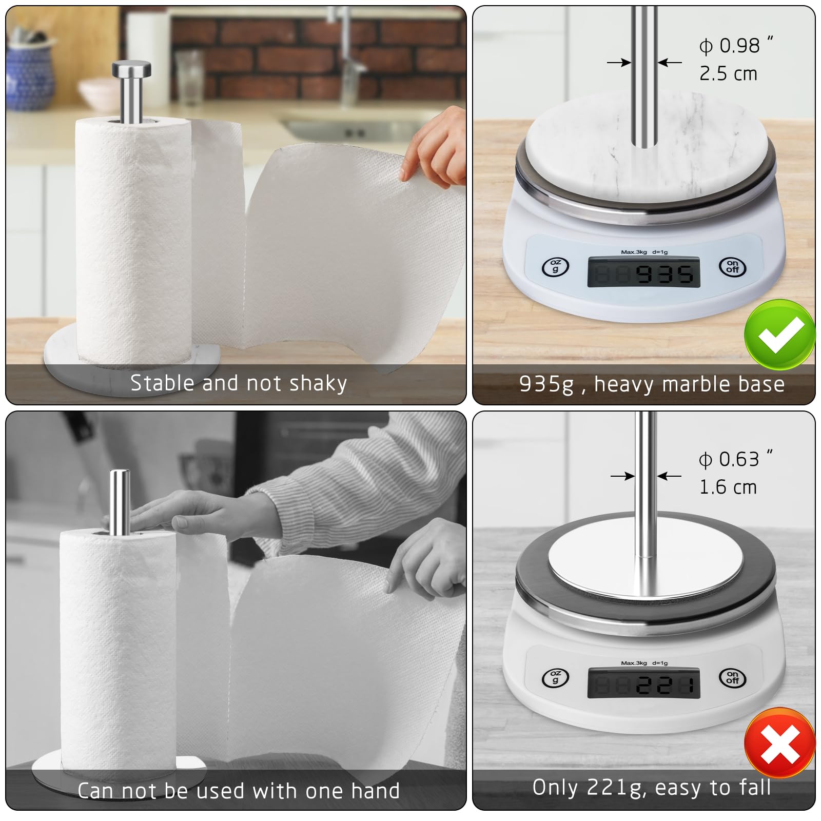 DURABILITY: Natural marble and metal paper towel holders are a stylish and functional addition to any kitchen or bathroom. The combination of natural stone and metal provides a modern and sophisticated look, while the durability of the materials ensure that the holder will last for a long time. With proper care and maintenance, a natural marble and metal paper towel holder can provide years of functionality and beauty.
