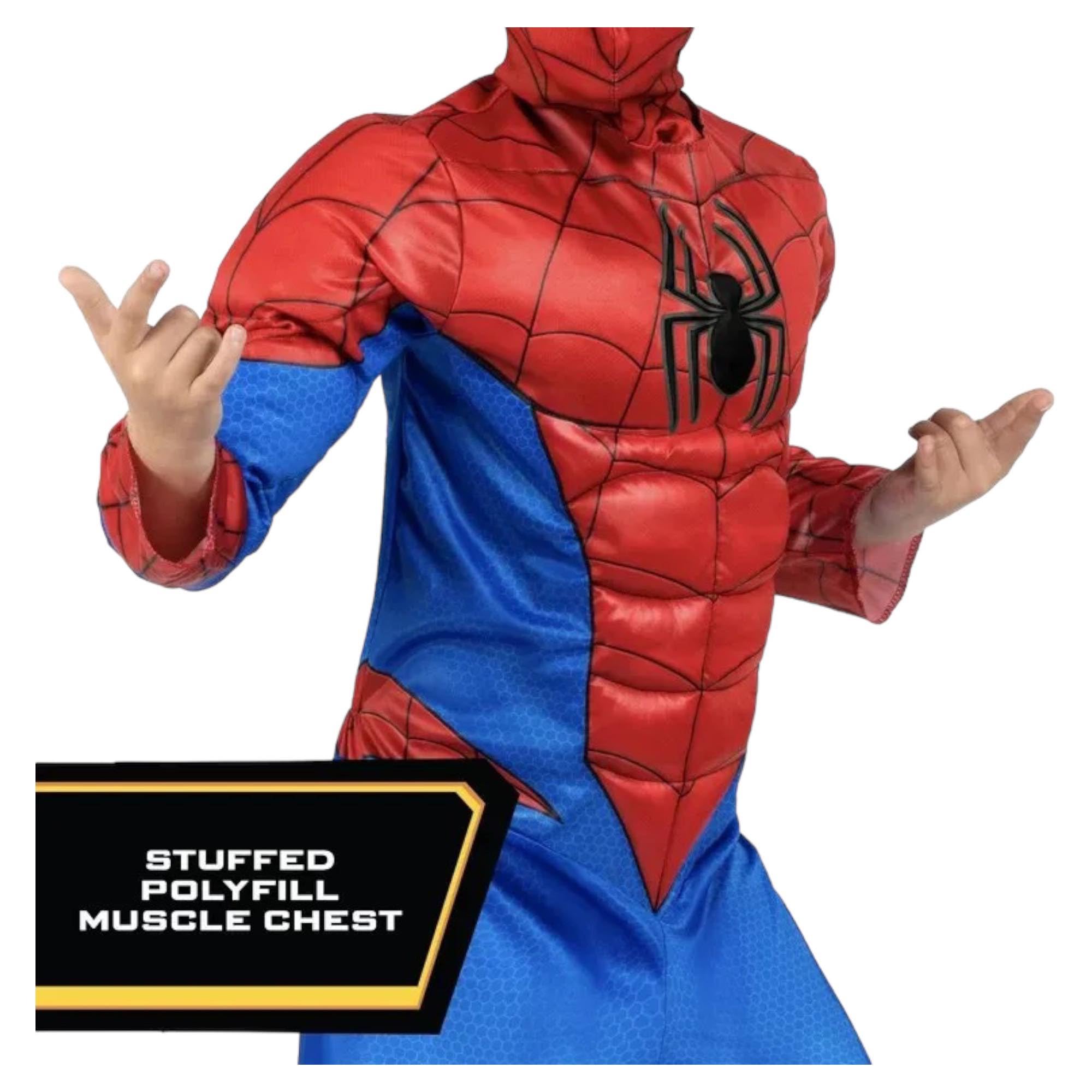 Description Your child can swing his way home in this Halloween Marvel Spider-Man Child Costume. Inspired by Peter Parker’s advanced nanotech armor, this full-bodied jumpsuit will prepare your kid for the final battle with any villain. It’s cut from poly jersey and stuffed with polyfill on the arms and body. It also features Spider-Man’s unique spider symbol on the costume’s front and back along with a fabric mask to keep your identity safe. Officially licensed Marvel product, by Jazwares.