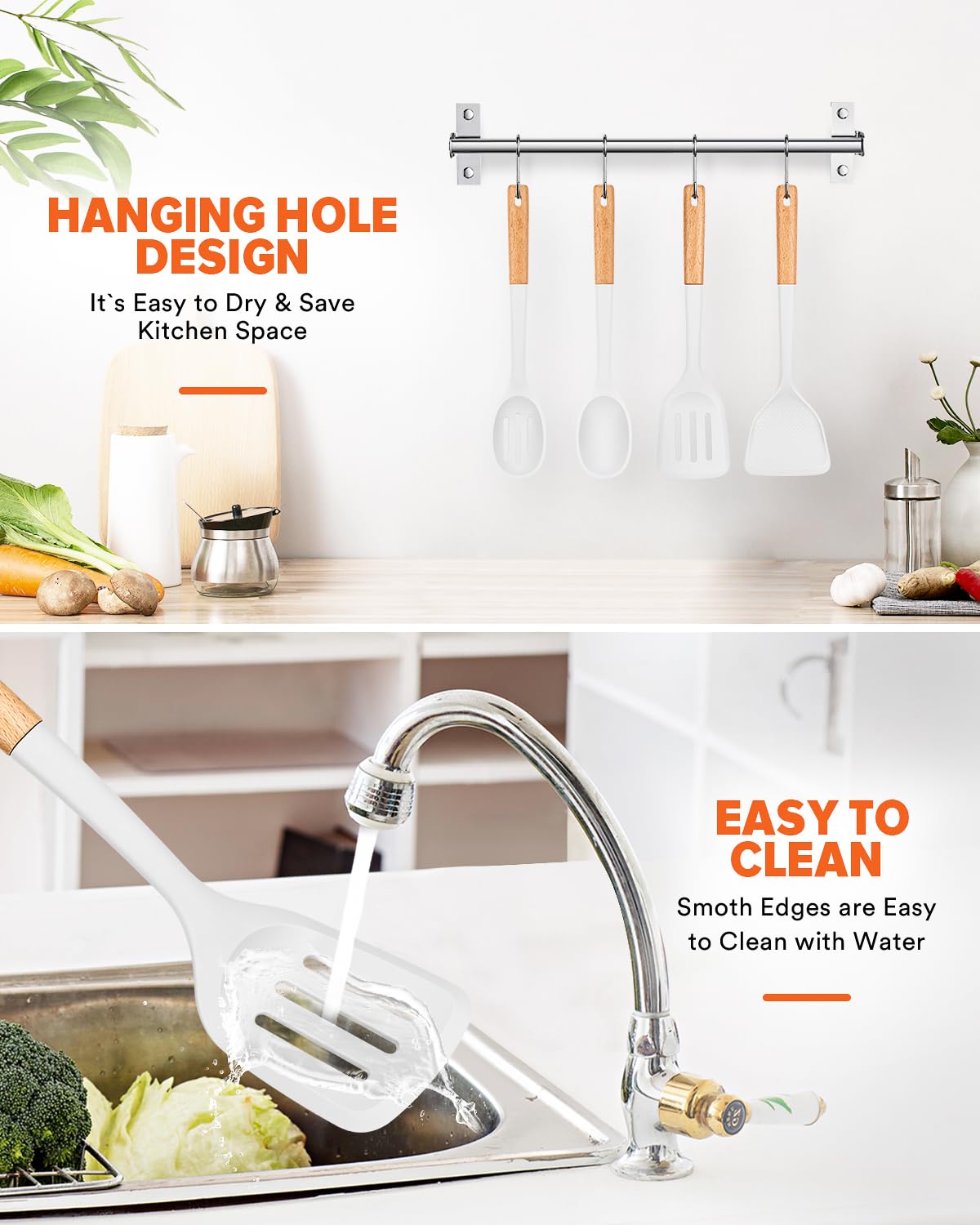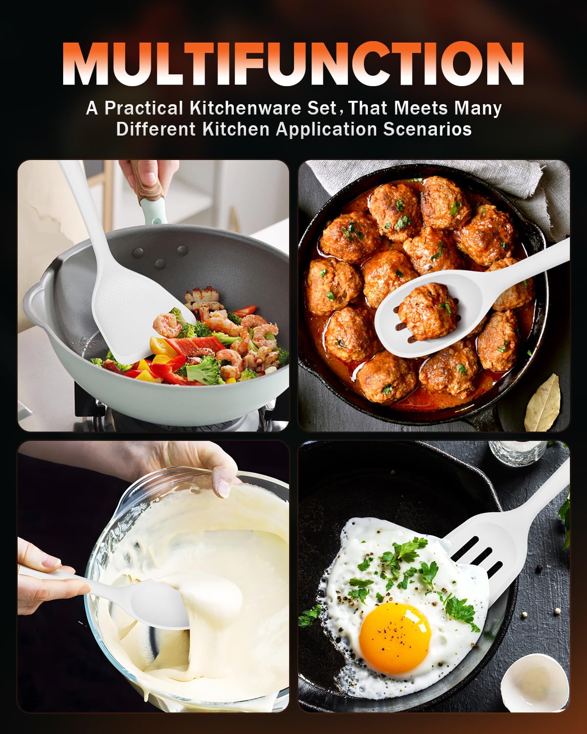 Gentle on cookware: With smooth edges, our silicone Cooking Utensils protects non-stick cookware from scratches and damage