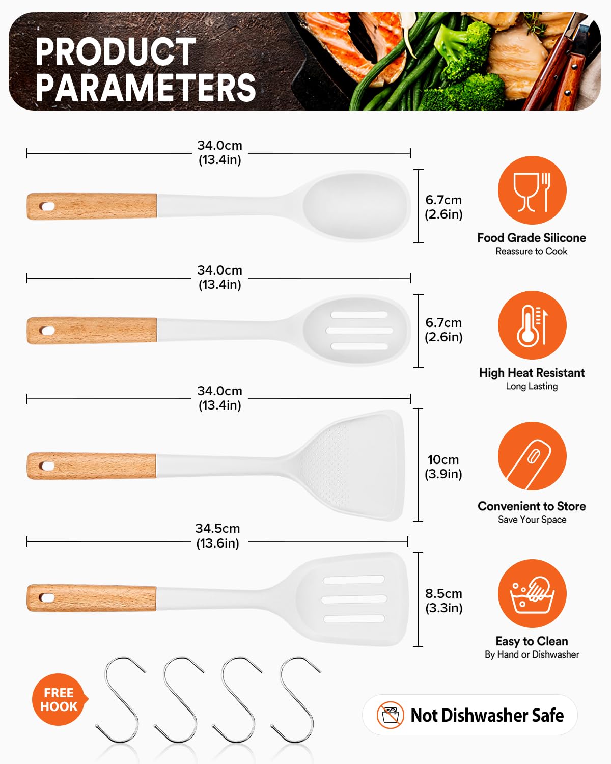 Versatile Tools: Silicone turner for flipping/frying; large spoon for serving; slotted spoon drains liquids quickly