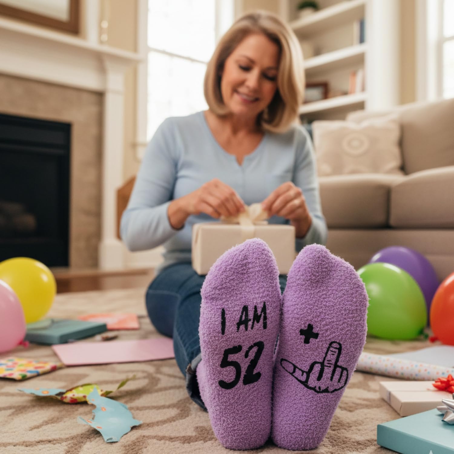 53rd BIRTHDAY GIFT IDEAS: "I AM 52+1." Say it with socks - These are suitable for any holiday gifts, like Birthday gifts, Christmas gifts, or White Elephant gifts.