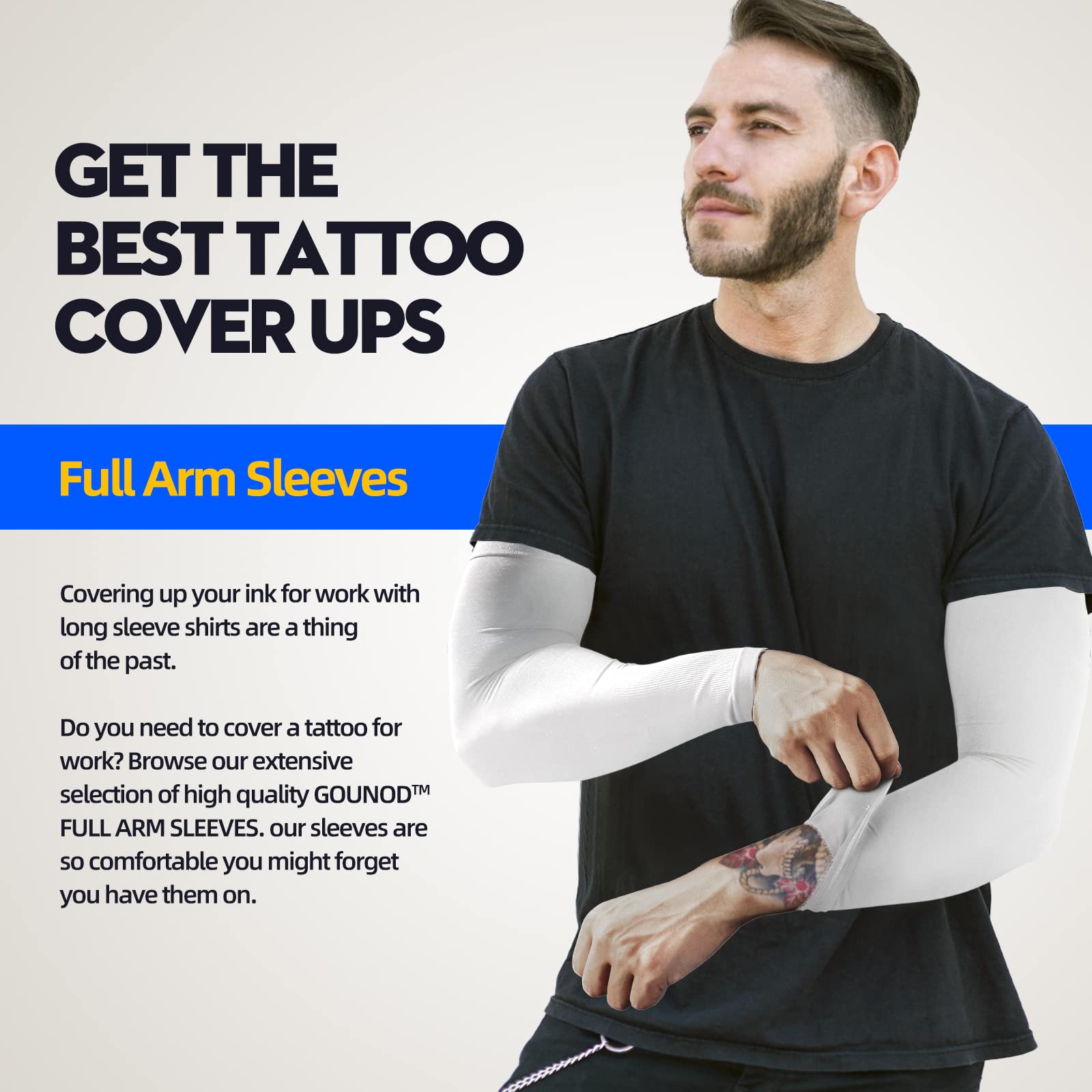 Superb Tattoo Coverage & Allergy Free:GOUNOD makes cover up sleeves for those who have tattoos. Different companies, schools, and organizations have policies regulating dress. Sometimes this means covering tattoos.And free from harmful chemicals,making them perfect for those with sensitive skin.Recommended by medical experts to maintain healthy skin.Super lightweight and small enough to fit inside of your pocket