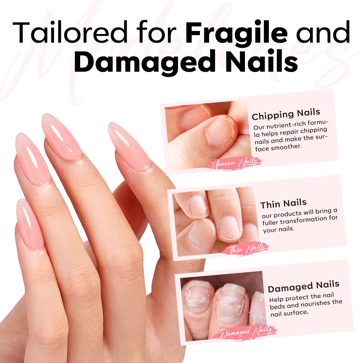 Made for Weak Nails: Ideal for thin, soft, brittle, peeling, or damaged nails. modelones rubber base gel nail strengthener bends with natural nails to prevent breaks and splitting, smooths ridges, and builds natural curvature while promoting healthier nail growth over time