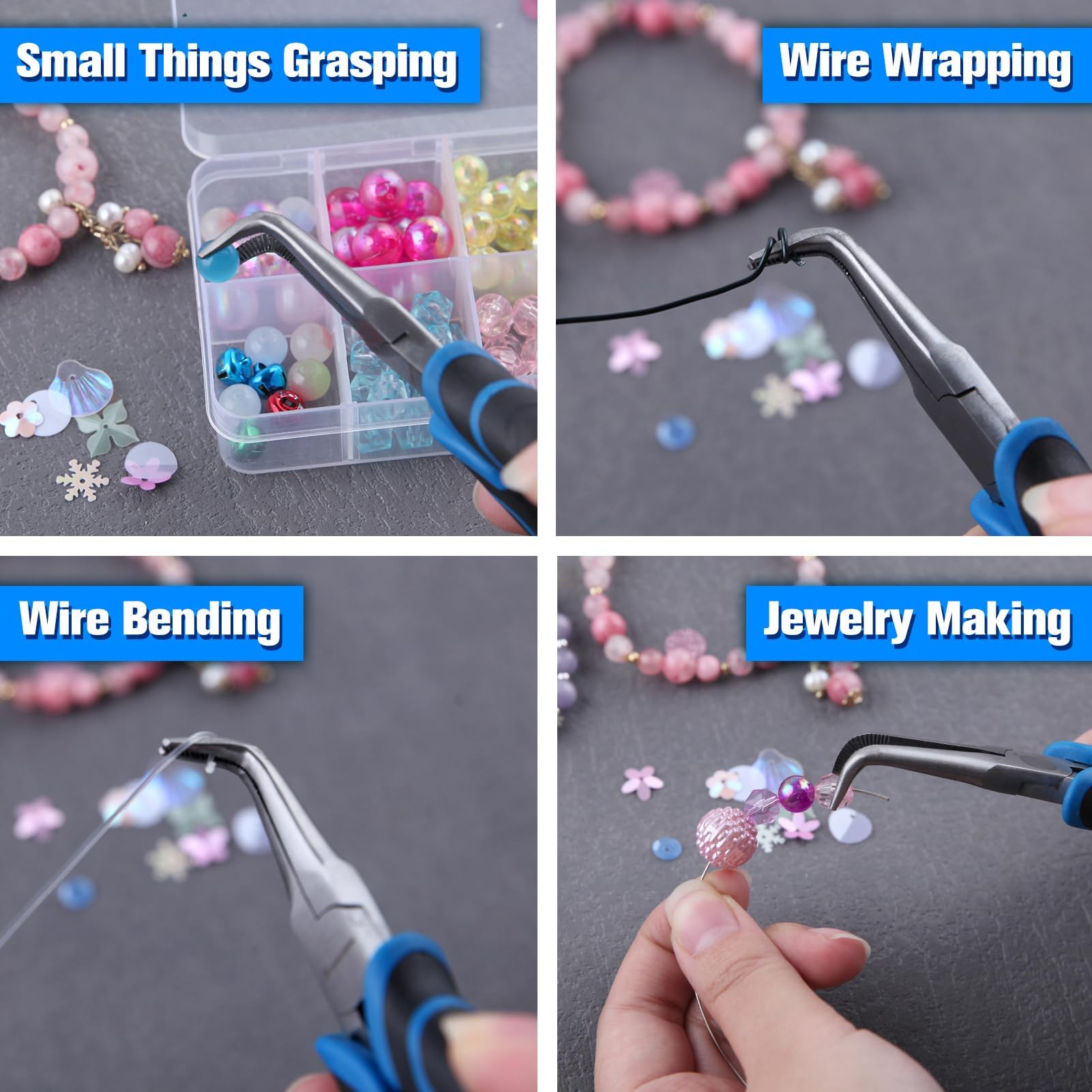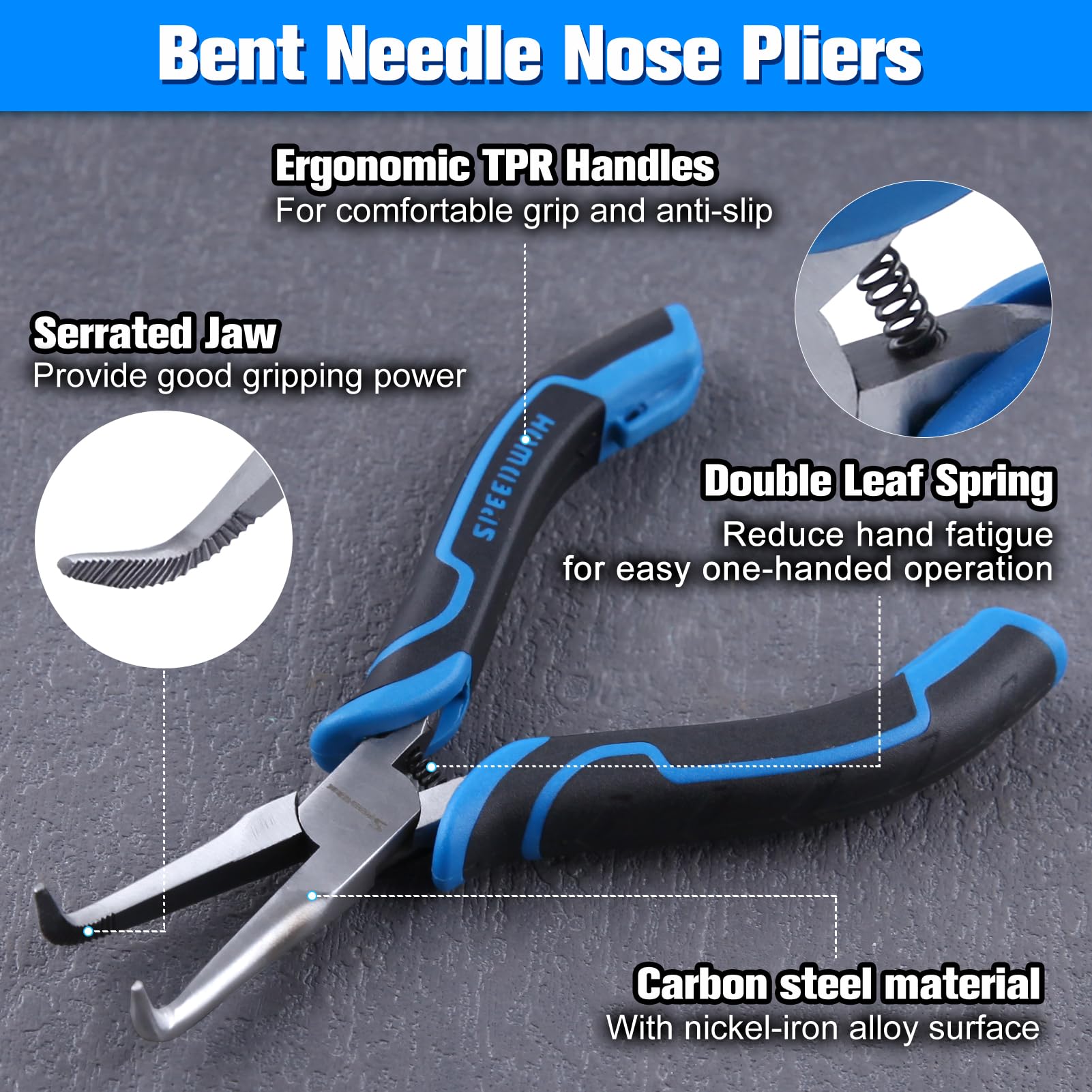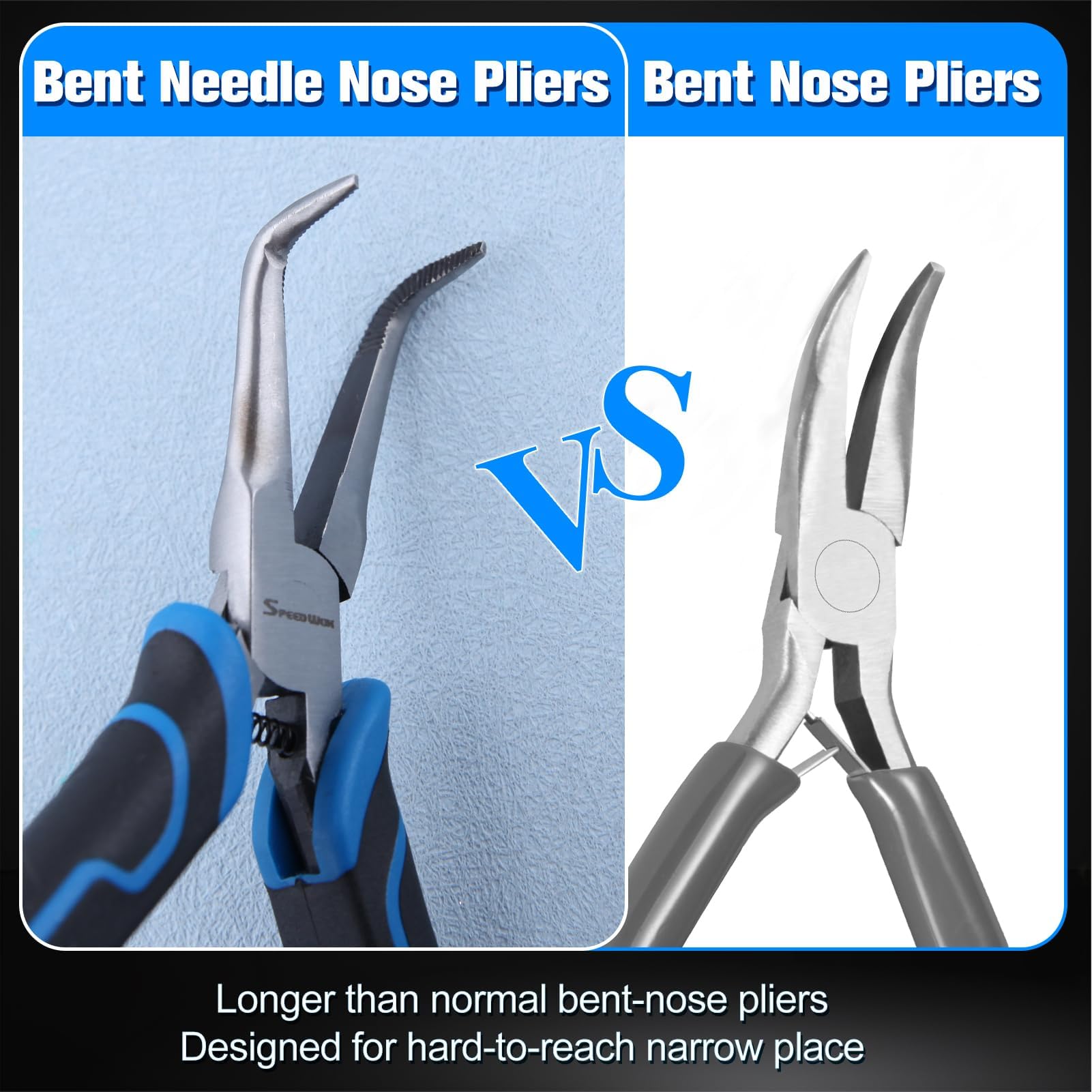 【APPLICATION】Needle nose can effortlessly grip and release small items, suitable for bending wire, jewelry making, computers maintenance, electronics repair, small object gripping ect. 45-degree bent needle nose pliers ideal for confined areas.