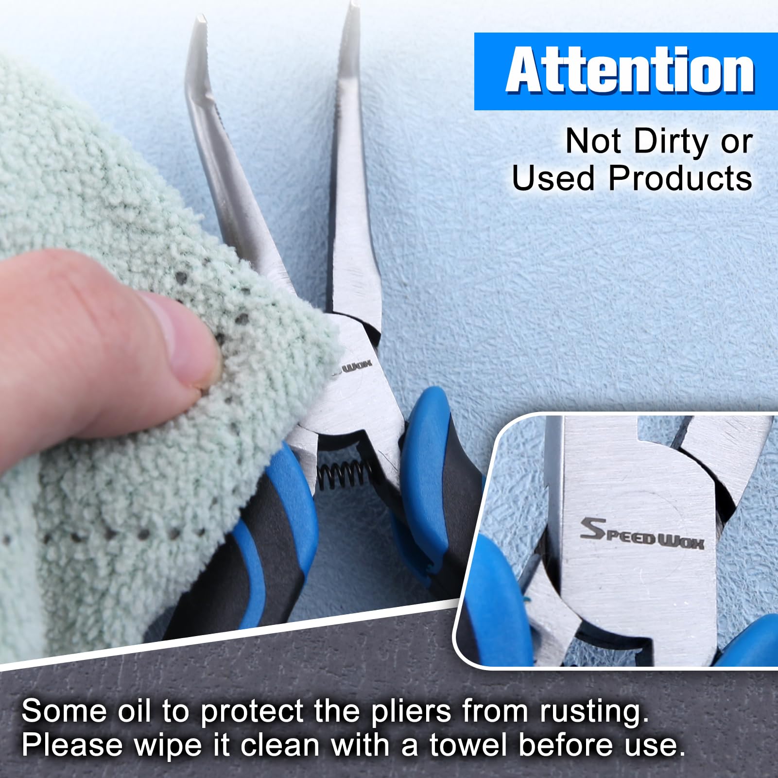 【ANTI-RUST OIL】 The anti-rust oil may be appeared on the pliers, it can protect the pliers from rusting. It's not dirty or used products, you can clean it with a towel and it will not effect the function.