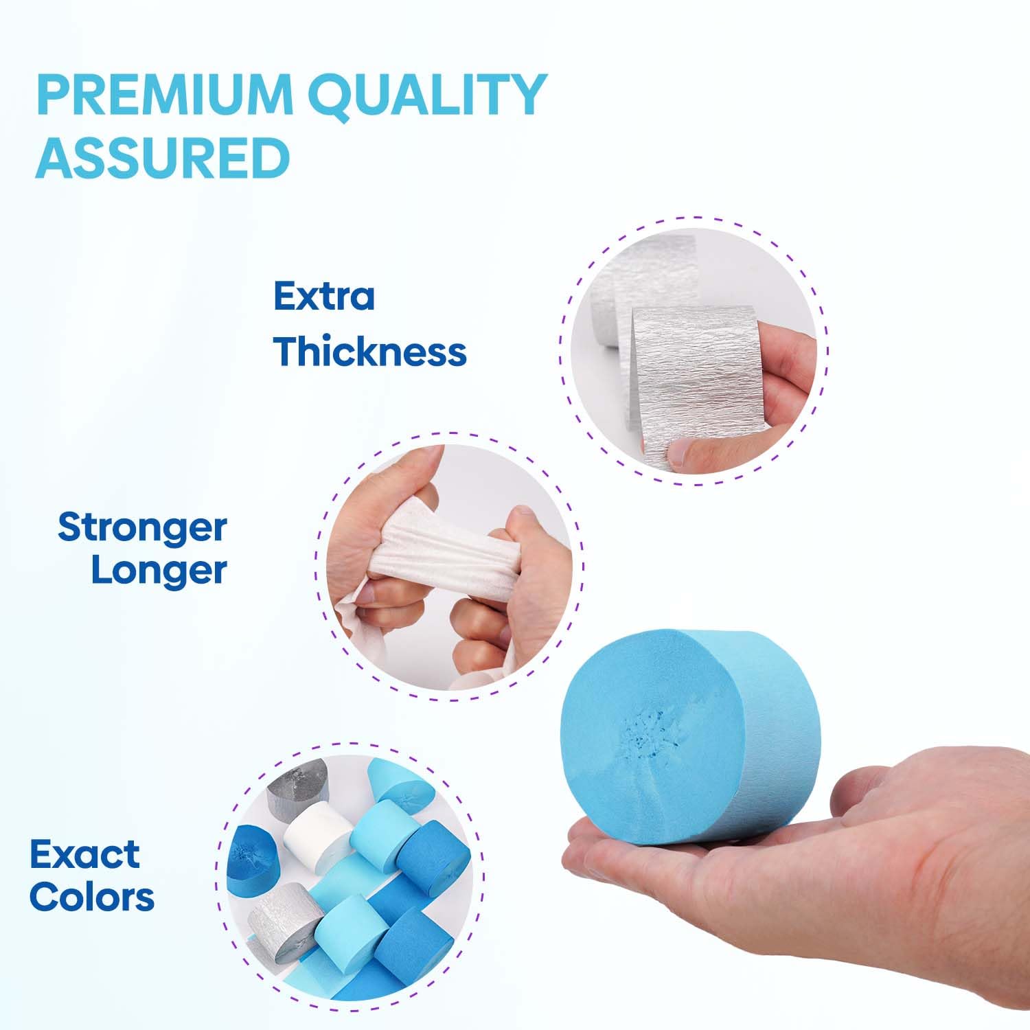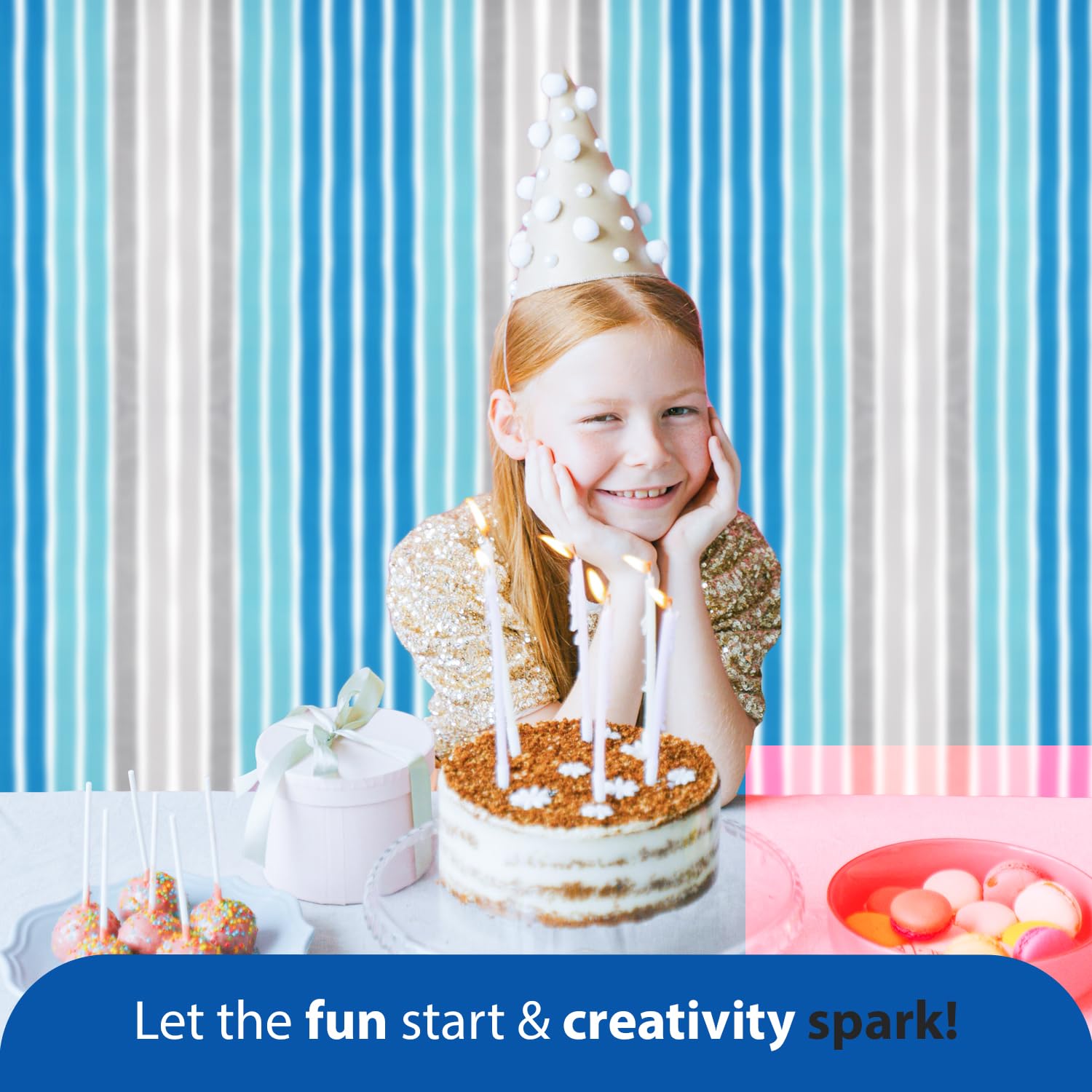 Versatile & Perfect for Celebrations: Ideal for everything from birthday decorations to bachelorette party decor, our streamers party decorations enhance any blue party decorations. Use them for DIY crafts, , or even making your own confetti. They add a burst of color to any decorations party, including fiestas, baby showers, and graduations.