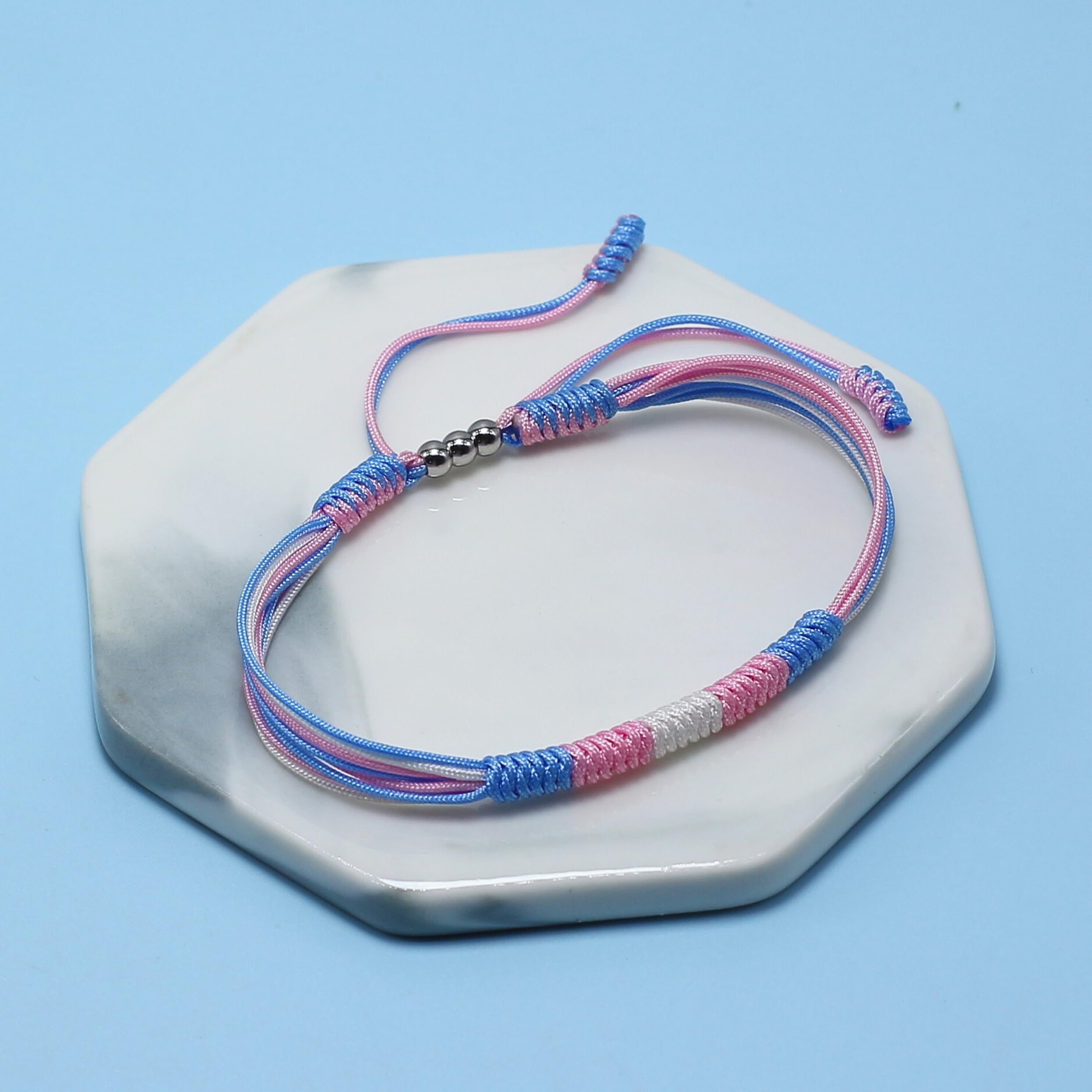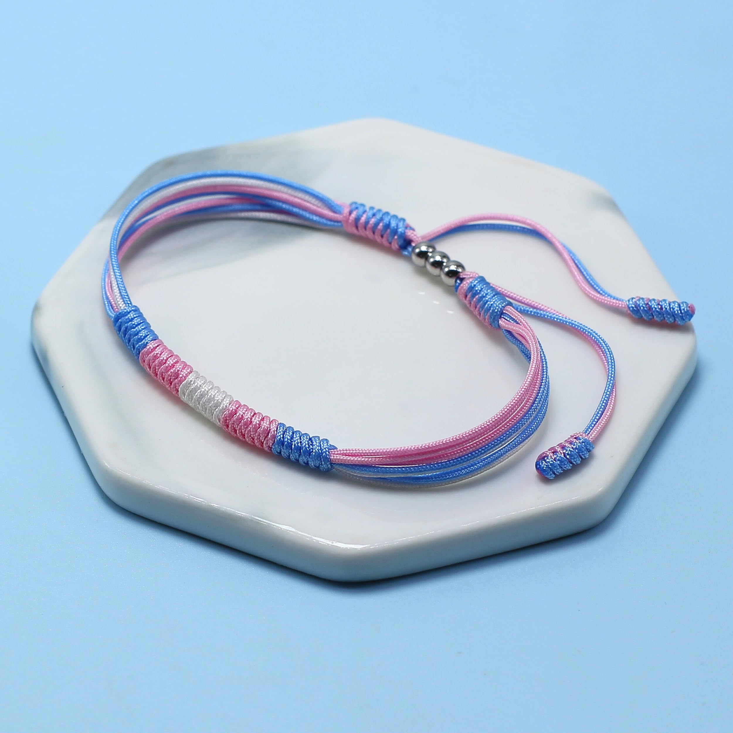 đGREAT KEEPSAKE: Featuring the iconic colors of the transgender pride flagâlight blue, light pink, and whiteâthis bracelet is a powerful symbol of your transgender pride and journey.