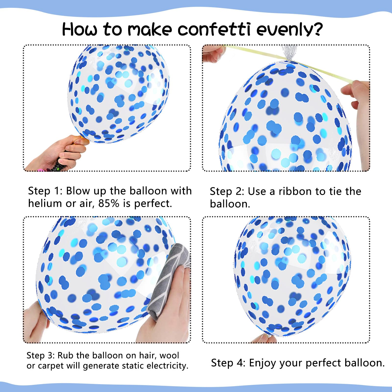 Warm Tips: Avoid over-inflating the balloons and protect them from exposure to sunlight, high temperatures, and sharp objects to prevent bursting