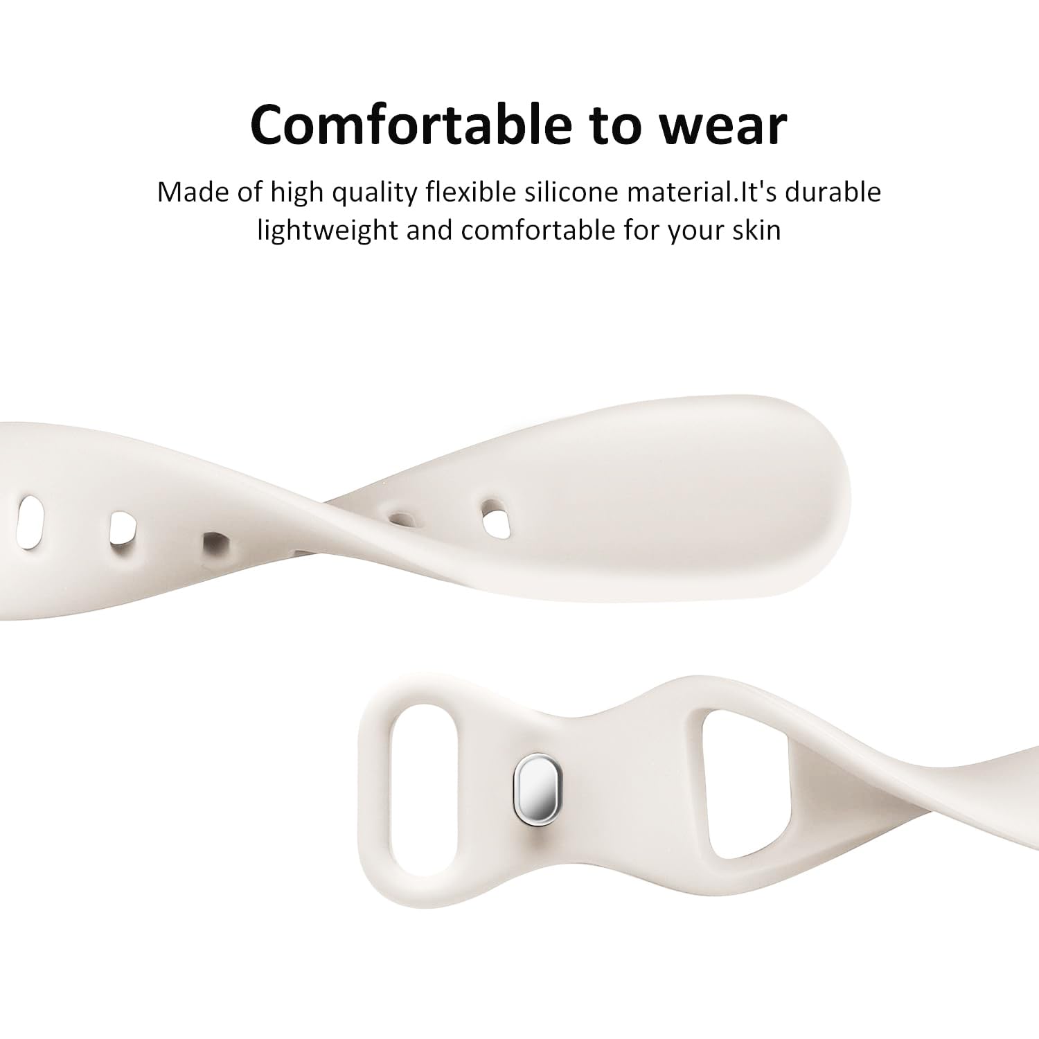 【Premium Silicone Material】Made of pure silicone and flexible elastomer. Durable and soft silicone material across your wrist, improves airflow and comfort, bring you a comfortable wearing experience, Sweat & water resistant.won't irritate the skin.