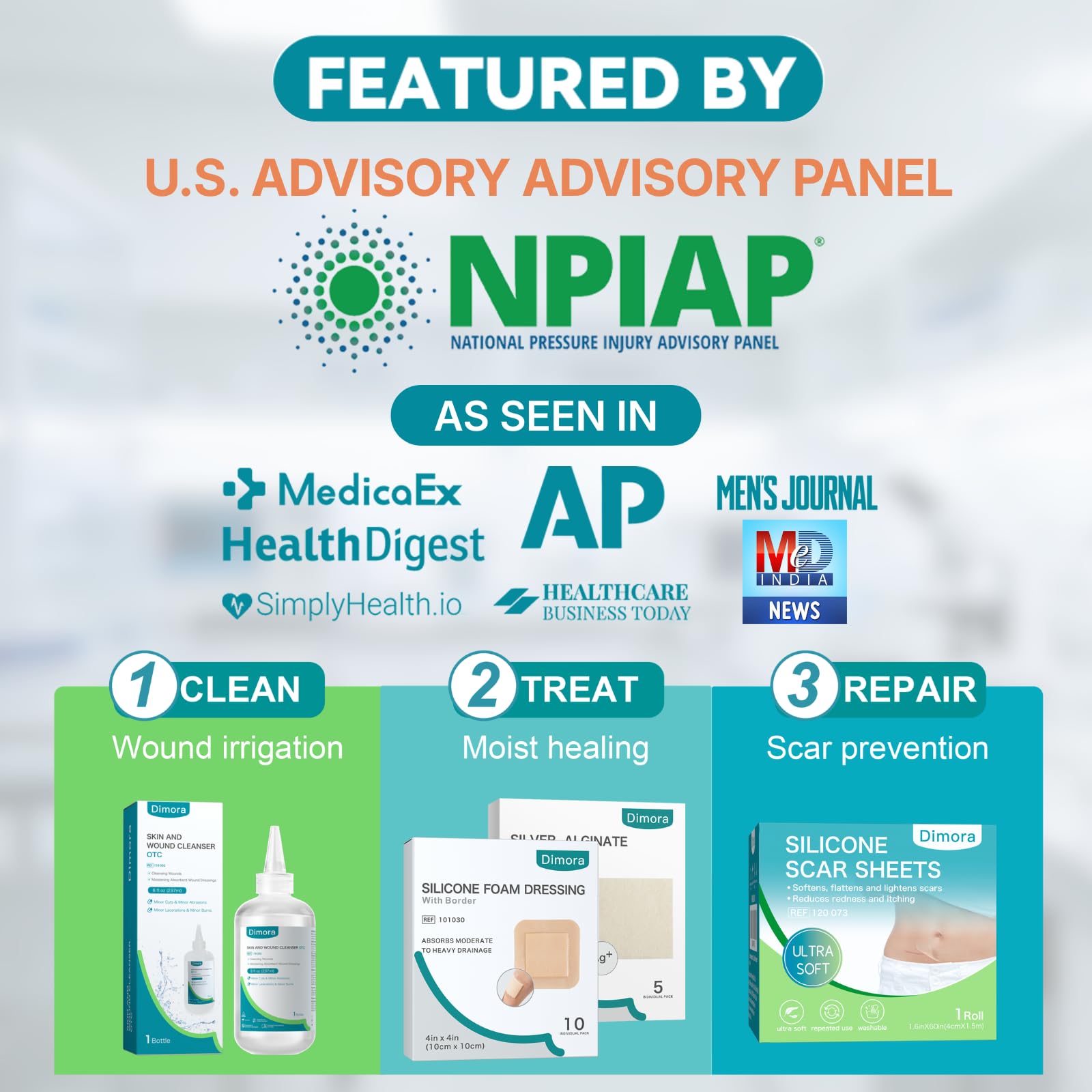 GENTLE BUT SECURE ADHESION - We adopts an A+ medical-grade hypoallergenic silicone as a wound contact layer, it absorbs dead tissue cells, won't stick to the moist wound, while is sticky enough to stick to dry skin, minimize pain and trauma at dressings change