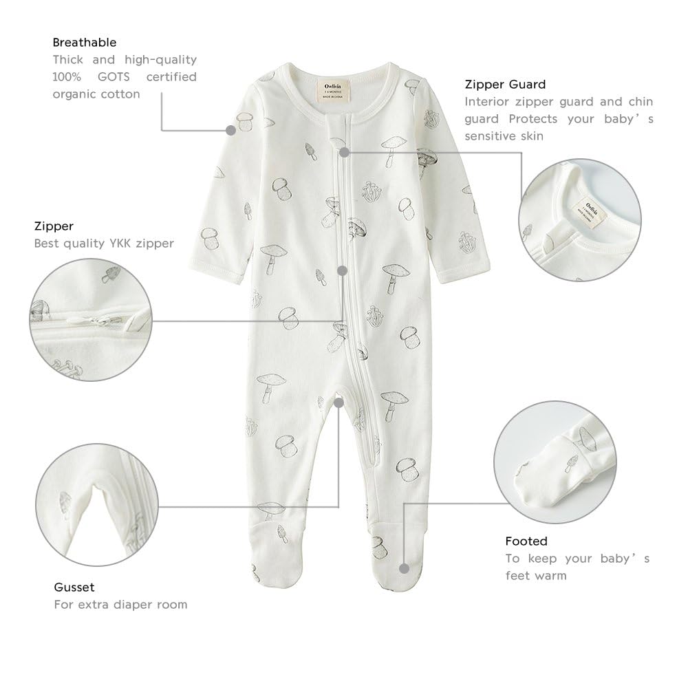 100% GOTS CERTIFIED ORGANIC COTTON: we use only high quality and naturally grown organic cotton without the use of harsh chemicals or pesticides which makes our romper onesie super soft and gentle for children’s skin.