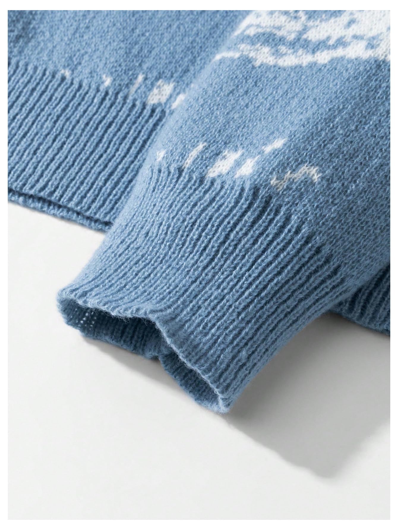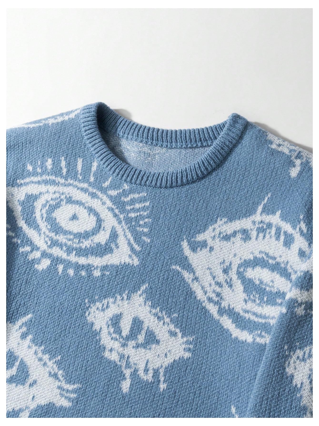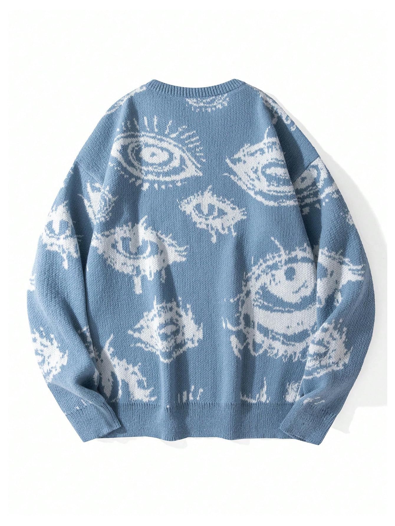 Features: Graphic, round neck, long sleeve, oversized, halloween sweater, loose fit pullover sweaters for men