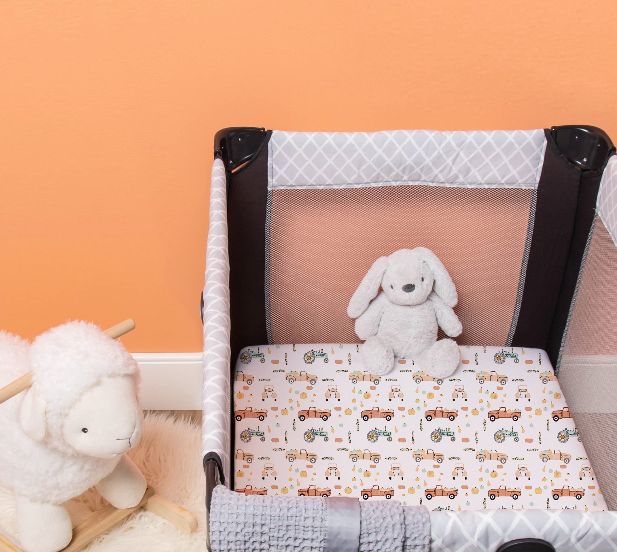 TotAha Premium Stretchy Pack N Play Playard Sheets | Mini Crib Sheets (2-Pack) -Hypoallergenic, Silky Comfort, Buttery Soft, Calming Effect, All-Season Jersey-Knit Sheets 38 X 24 Halloween Pumpkin