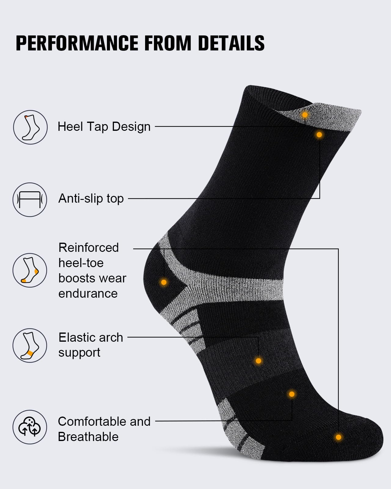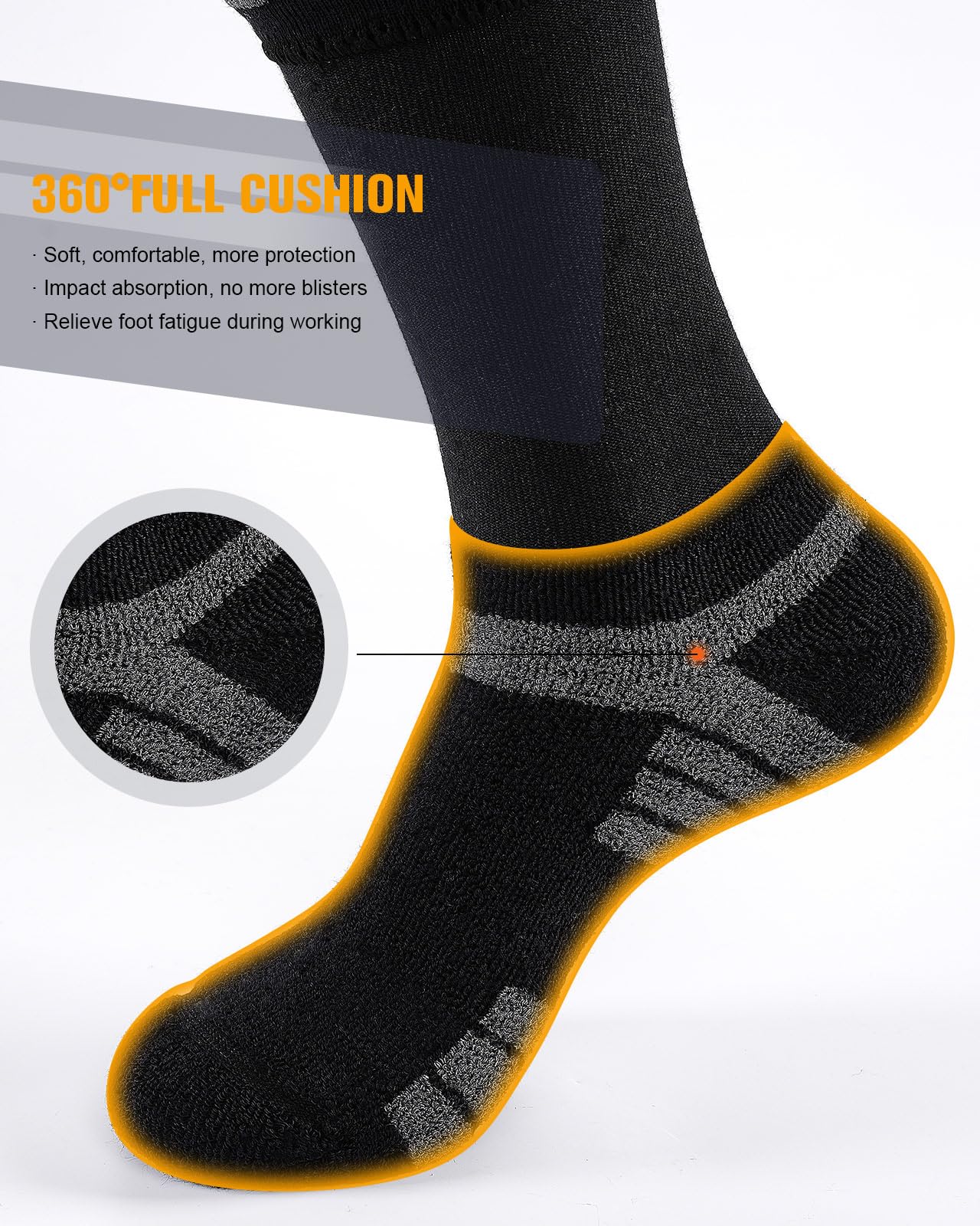 REINFORCED DURABILITY:Built with reinforced heel and toe areas for exceptional durability and extra protection in high-wear zones, men's work socks are designed to withstand daily workouts, sports, work boots, and demanding activities