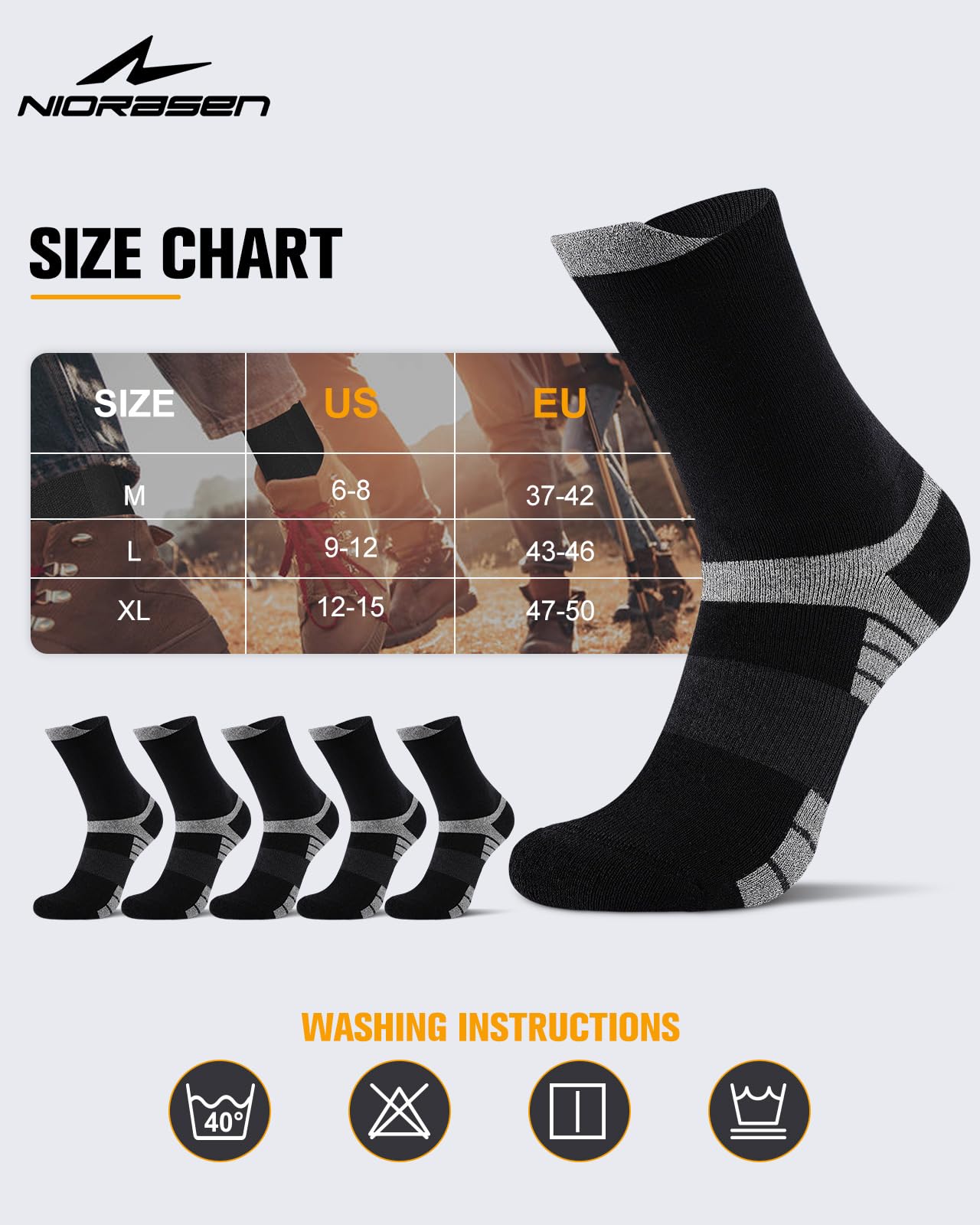 ALL-DAY COMFORT: Niorasen crew socks feature terry cushioning on the sole and instep for lasting comfort and shock absorption, helping reduce fatigue and prevent blisters during running, hiking, or daily wear