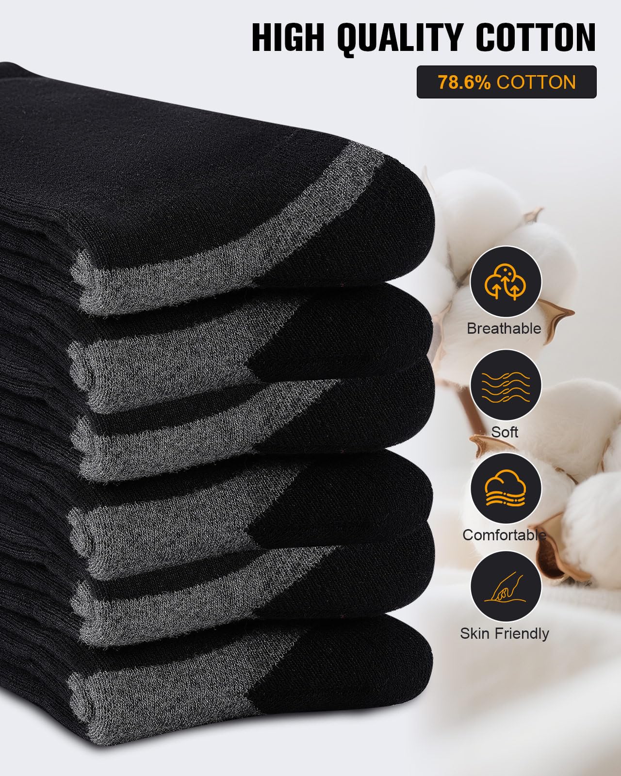 MOISTURE-WICKING COTTON SOCKS: Crafted from 78.6% premium cotton, these boot socks wick moisture to keep your feet cool, dry, and odor-free, providing optimal warmth and breathability for work, exercise, or daily wear