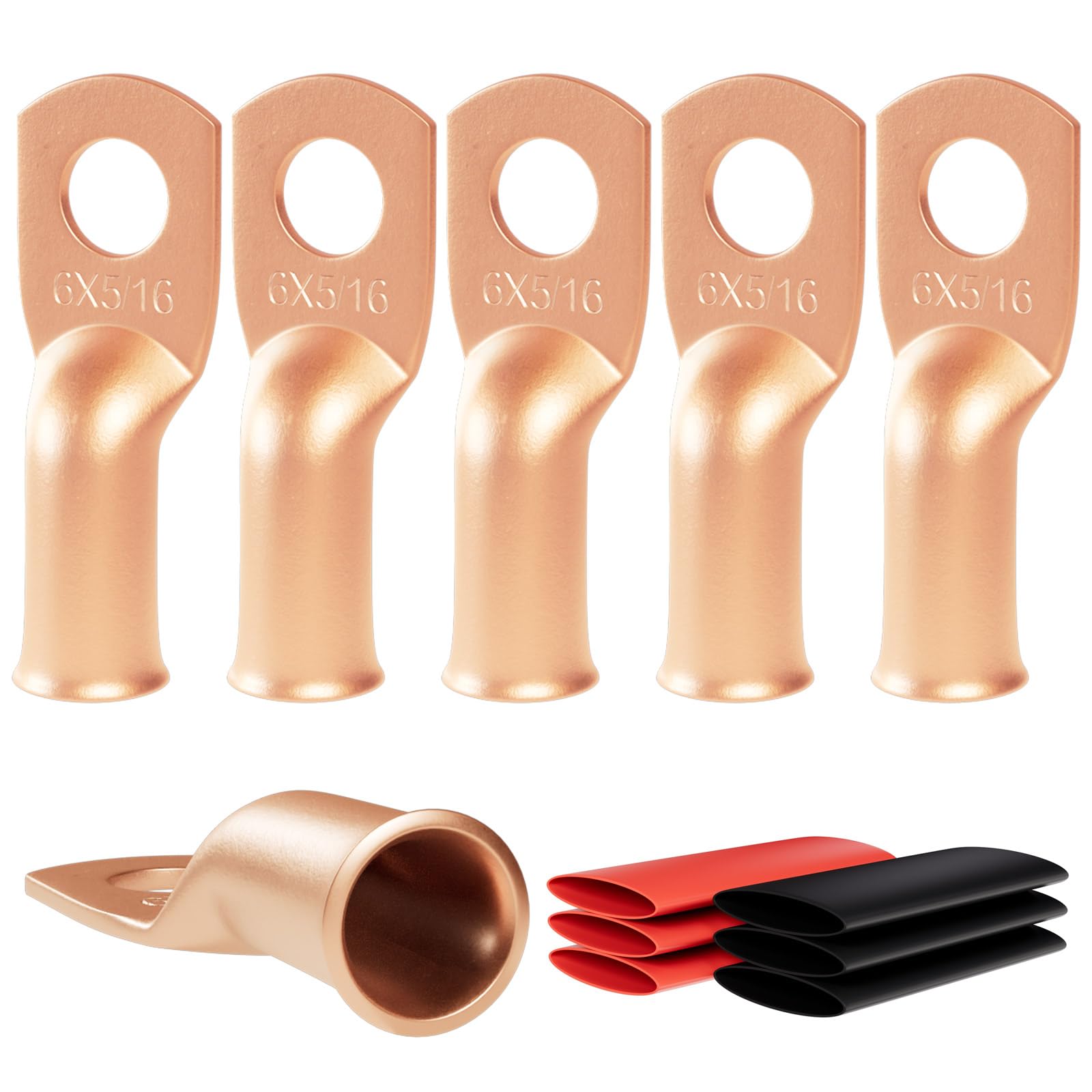 ☆『What You Will Get:』In this set, we offer 6pcs 6 Awg - 5/16" (M8)ring terminals copper lugs tube end termination ring terminals for your work, 3Pcs black and 3 red 3:1 Dual Wall Adhesive Heat Shrink Tubing Tube.