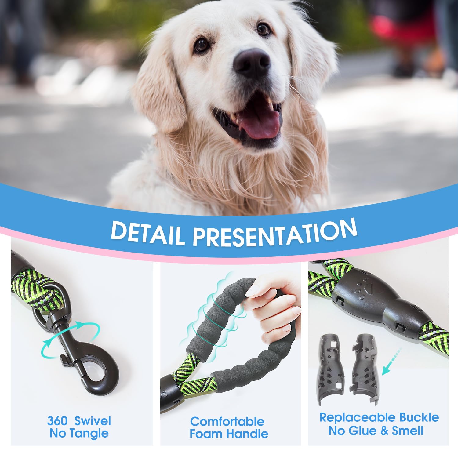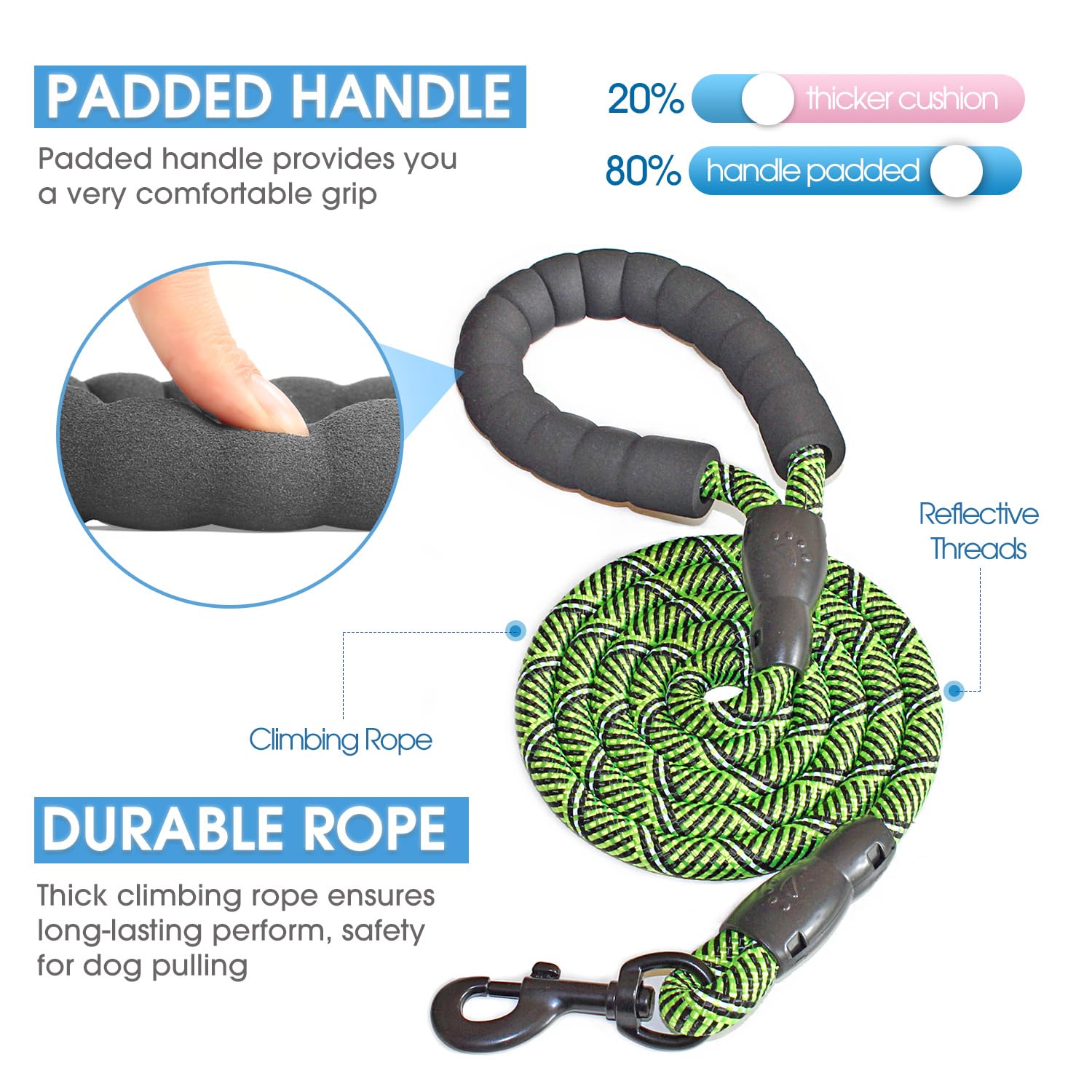 Comfort Padded Handles - Features soft padded handles for amazing comfortable, just enjoy the feeling walks with your dog and protects your hand from rope burn.