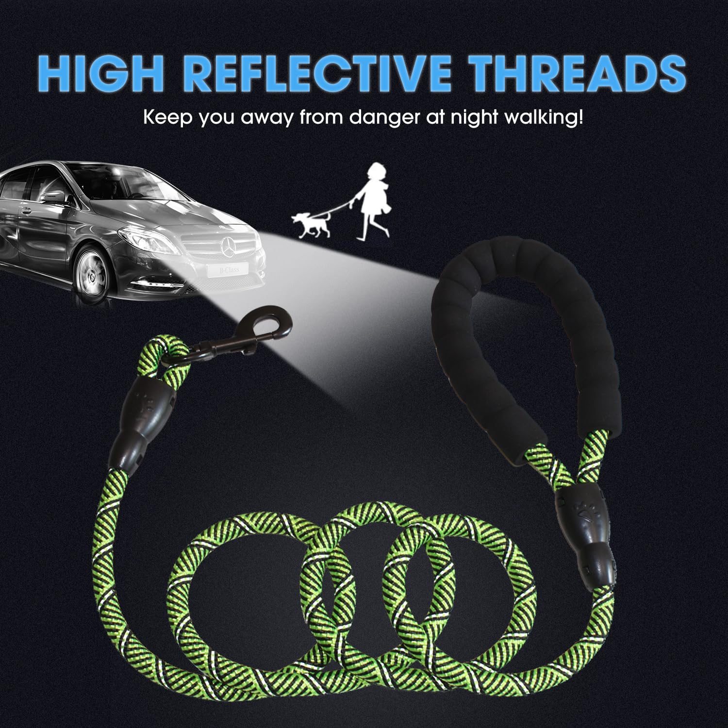 Reflective for Night Safety - Highly reflective threads dog leashes keeps you both safe and visible on your late-evening walks.