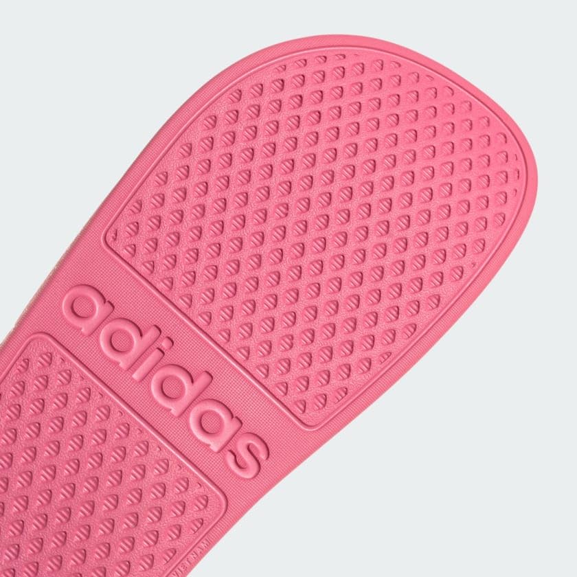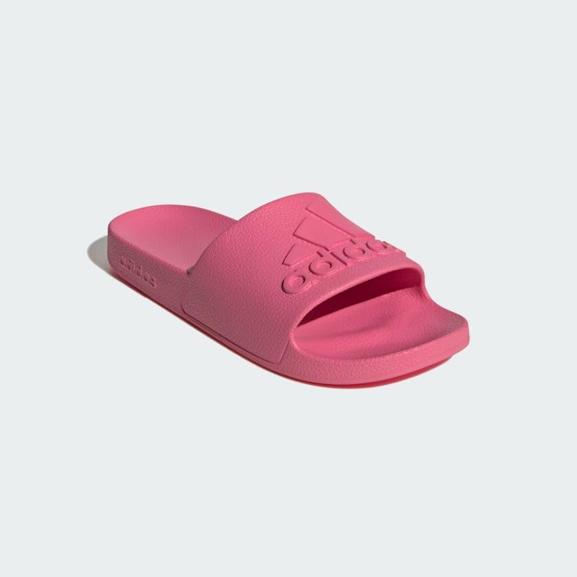 Description These Adilette Aqua Slides bring welcome comfort to tired feet. They have a one-piece molded EVA upper and a plush Cloudfoam footbed. Hit the shower in adidas 3-Stripes.