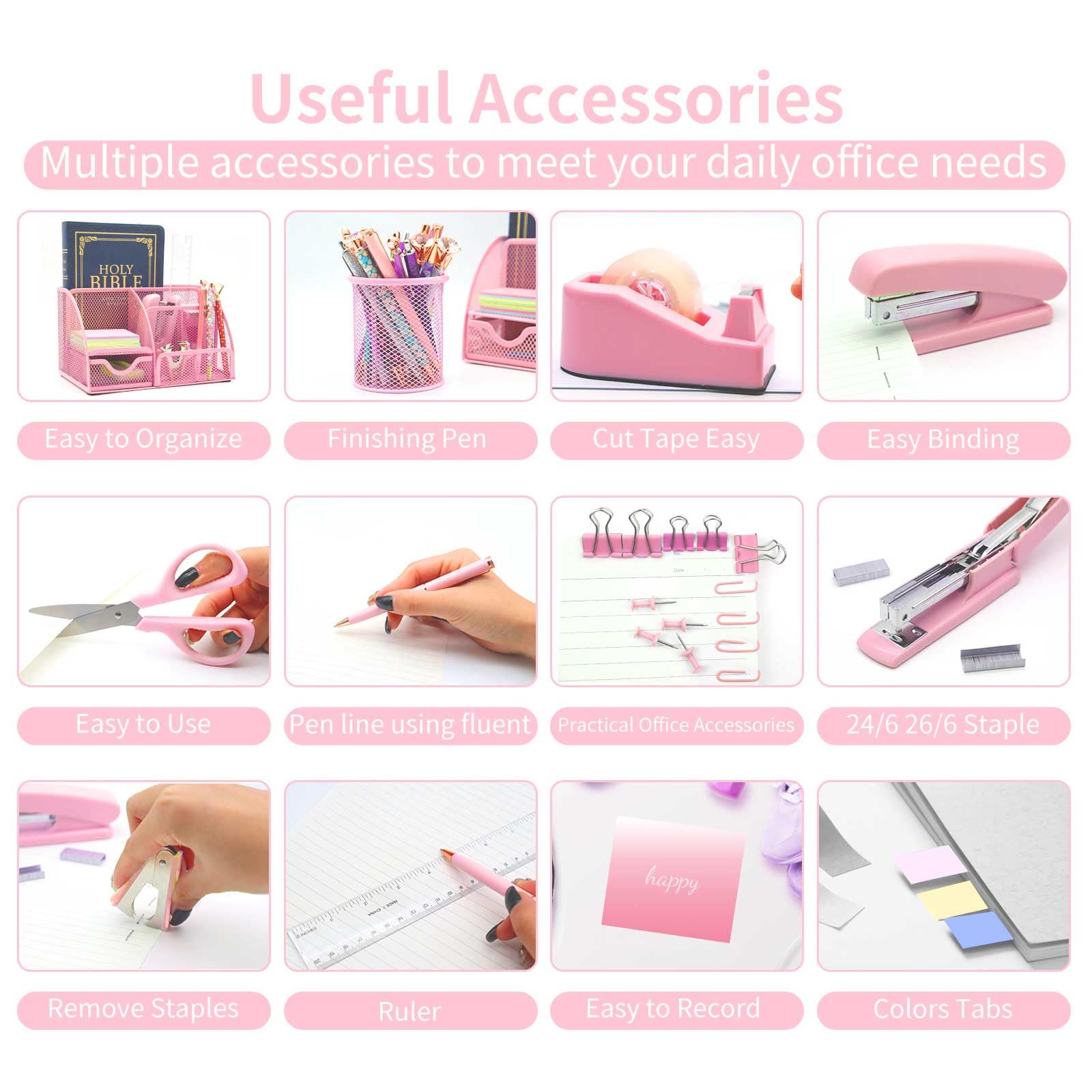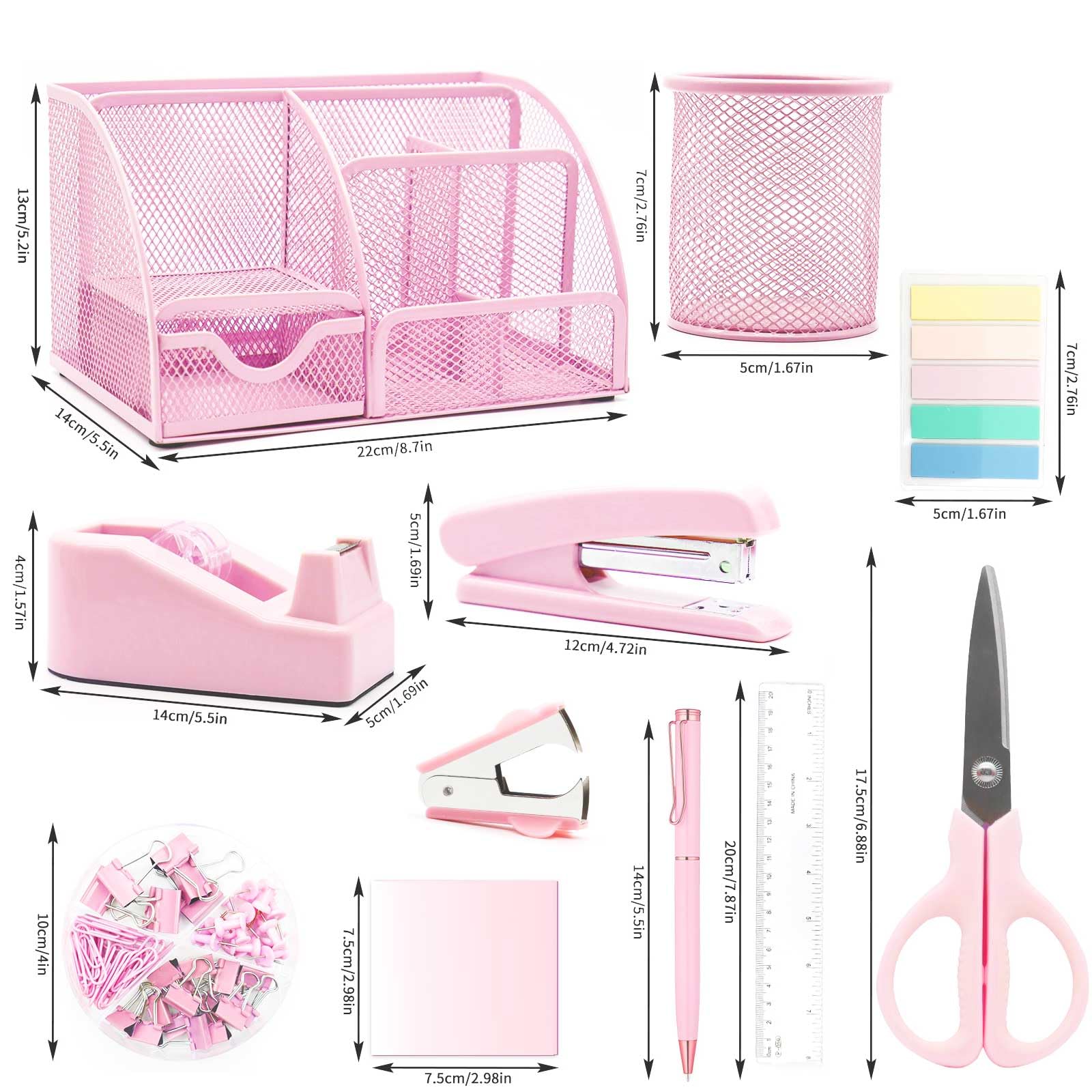 🏆Durability Champ🏆These pink desk organizers and accessories are built tough, ready to handle the daily office grind. They will withstand the toughest challenges, just like a superhero in a pink cape! No matter how many papers you staple, how much paper you cut or how many pieces of tape you use, this combo will stand up to the test of time.
