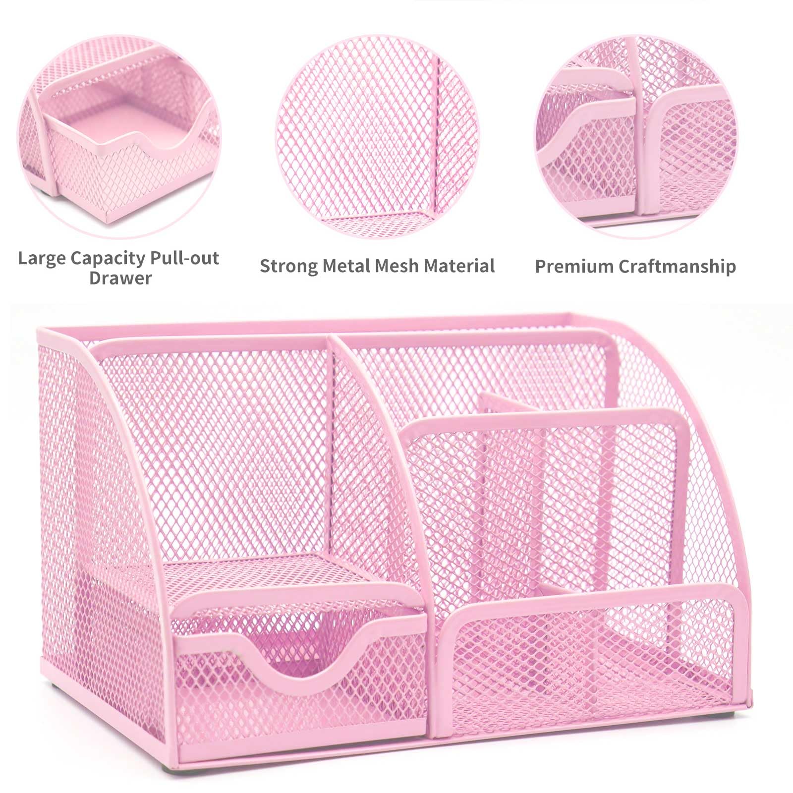 📣12 in 1 Buy with More Affordable📣You can buy pink desk organizers and accessories what you need for your office at once instead of buying each item individually. Not only does this save you the hassle of purchasing, it can also save you some money. You will receive 1x pink mesh desk organizer with drawer, 1x pen holder, 1x tape holder, 1x stapler, 1000x staples, 1x staple remover, 1x scissor, 1x ruler, 20 x Push pins 7 x Big Clips 15 x Small Clips 30 x Paper Clips, 1x pink pen, 1x sticky note, 1x tabs sticker.