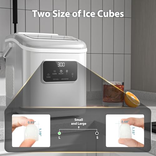 Simple operation with advanced digital screen: The LED control panel is simple to operate, fill the ice maker with water, press the "ON" button, and choose the size of the ice cube to be made. During the ice-making process, the digital screen will display the remaining time to complete a round of ice making (with seconds as the unit of time).When the water level is low or the ice basket is full, the indicator light will illuminate. The Timer button can be used to set a timer ranging from 1 to 24 hours.Timed setting, you can better enjoy the convenience and fun brought by the ice machine